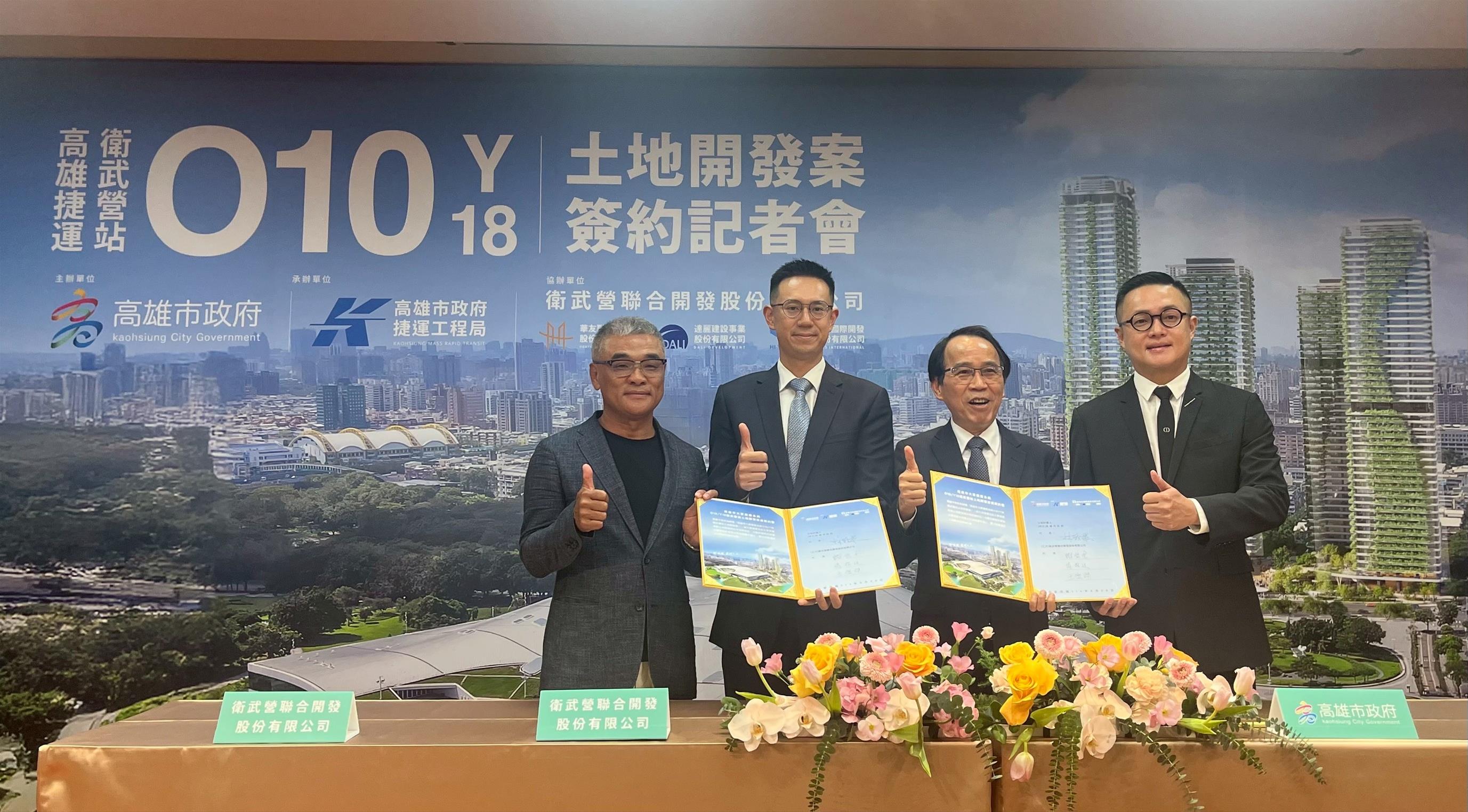 高雄邁向產業及交通建設的國際大都會,各方創新科技巨擘不約而同聚首高雄,包括台積電、AI、半導體、重量級建築皆在此大展身手,重塑高雄城市發展以及天際美學,吸引各類人才進駐,特別是軌道建設所帶動的創新產業及指標建築,更為高雄增添國際視野與超凡氛圍,其中最受矚目的O10/Y18衛武營聯開案,今日由林欽榮副市長代表市府與申請人團隊達麗建設事業股份有限公司、華友聯開發股份有限公司、海悅國際開發股份有限公司合組之衛武營聯合開發股份有限公司簽訂開發契約,將投資253億元,打造衛武營站周邊成為高雄的國際藝文聚落。
