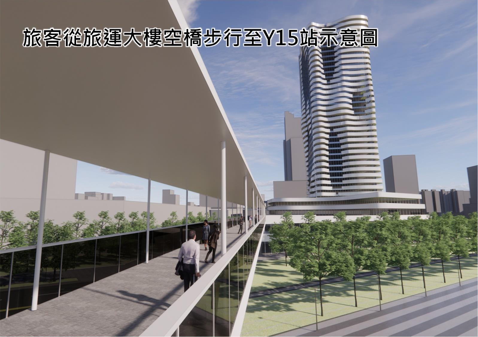 黃線Y15站為計畫路線端末站之一,通抵高雄亞洲新灣區核心地帶的旅運中心,相較其他車站的服務定位,Y15站具有可服務搭乘郵輪入出境旅客的特別功能。目前旅運中心地下層已規劃為停車場使用,因此規劃上考量未來郵輪旅客動線下船從2樓入境通關,透過立體空橋至毗臨停三基地開發大樓,可提供國際旅客入境後的購物及休憩需求後,再藉由電梯前往開發大樓地下層的Y15捷運站出入口,在整體轉乘空間規劃亦將會考量便捷及舒適的人行環境,讓國際旅客或市民大眾可以在舒適氛圍下享受逛選樂趣的轉乘體驗。