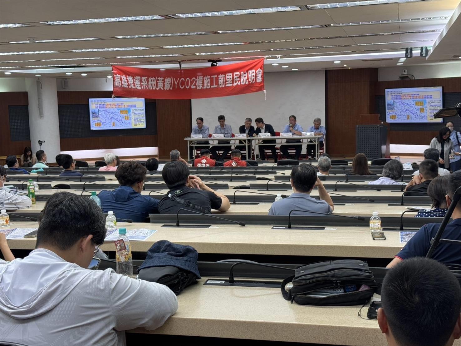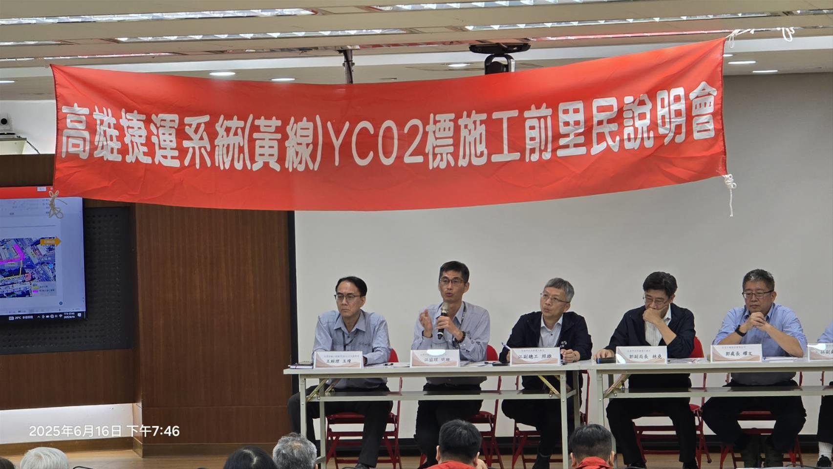 高雄捷運黃線YC02土建工程標預計於今(114)年7月正式進場施工。統包商工信工程公司繼上次(6/6)舉辦第一場施工前說明會後,接續於16日晚間假國立高雄科技大學舉辦第二場施工前里民說明會,現場邱俊憲議員、黃香菽議員、何權峰議員本人出席,另林岱樺委員、李昆澤委員、康裕成議長、曾俊傑副議長、張博洋議員、鄭孟洳議員由服務處團隊代表與會、三民區本館里里長簡明鎮、寶珠里里長陳榮增、灣利里里長郭峻毅、灣勝里陳金櫃、本元里沈建宏、本文里郭和成等里長等里長出席,周邊居民及商家皆踴躍出席,共同關心捷運建設。