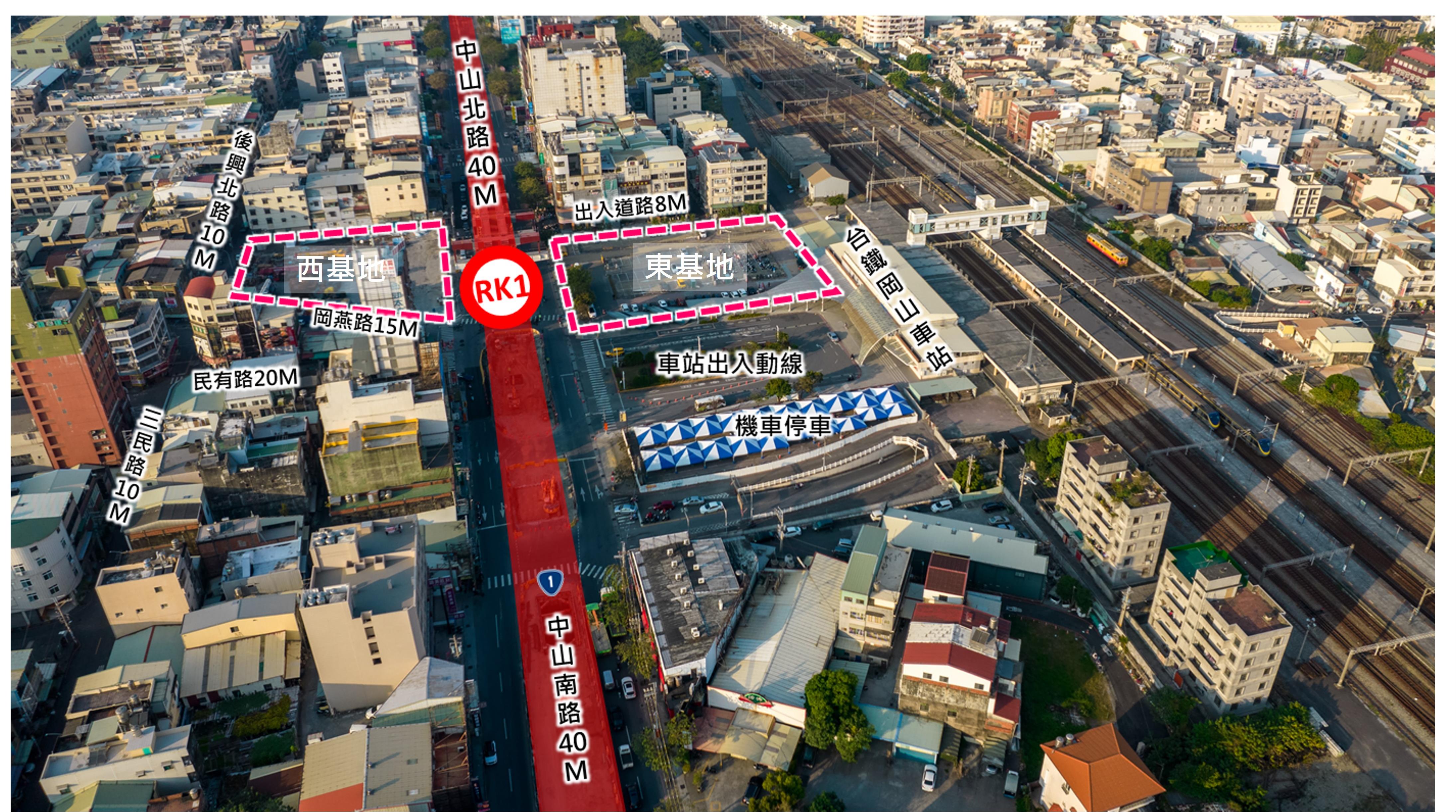 捷運局長吳嘉昌表示,RK1站東基地座落於捷運RK1站東側出口,基地面積3,158平方公尺,土地使用分區為捷運開發區,建蔽率為70%,容積率為630%,本案屬於分配建物所有權案件,預估開發量體可達1.2萬坪,未來開發總銷逾42億元,開發產品得由投資人於法令允許範圍內自由評估規劃,基地享有絕佳的交通優勢,搭配跨站天橋連接台鐵岡山站前後站及捷運岡山車站,期望透過本案讓捷運帶動岡山地區交通與經濟發展,使民眾轉乘捷運更安全、舒適與便捷。