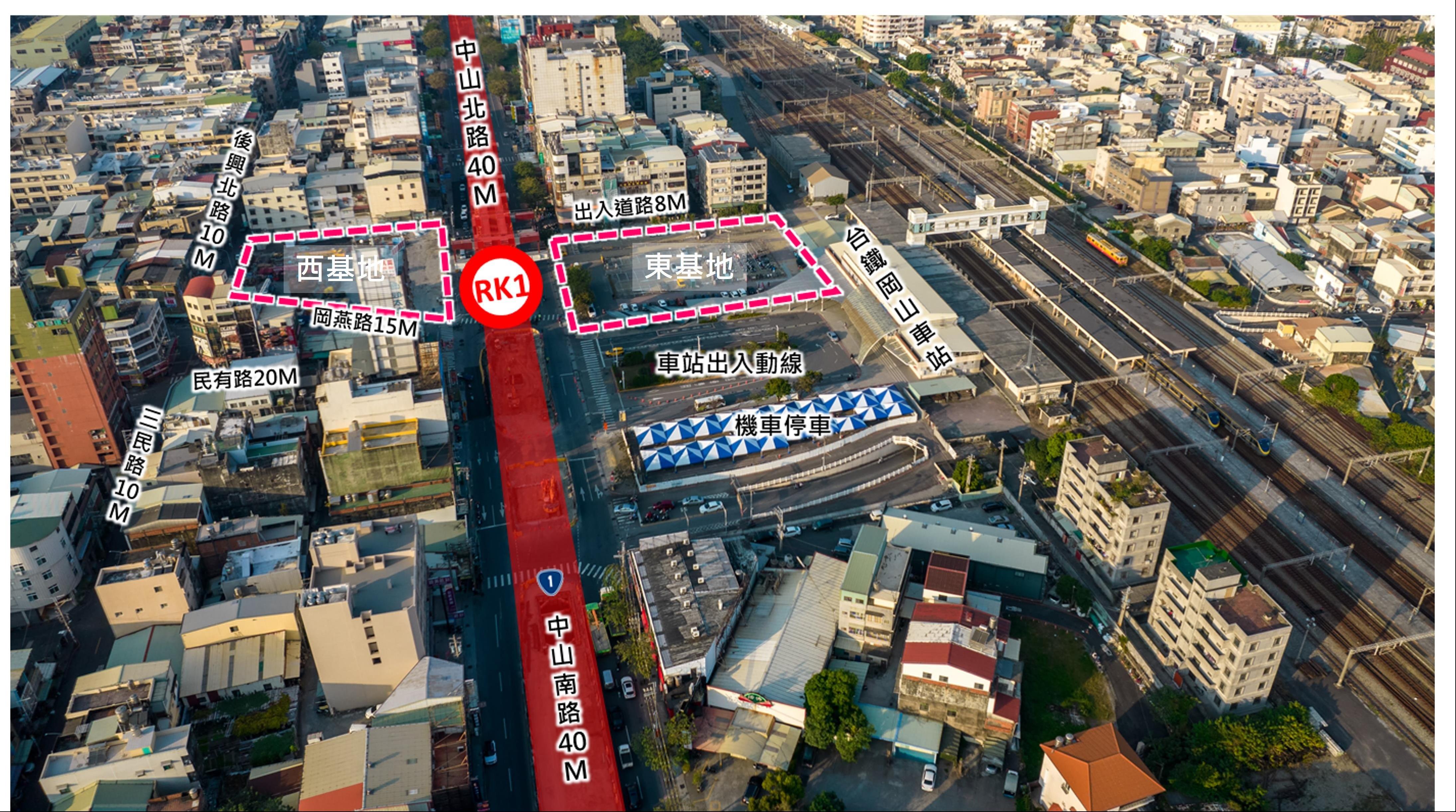 捷運局長吳嘉昌表示,RK1站東基地座落於捷運RK1站東側出口,基地面積3,158平方公尺,土地使用分區為捷運開發區,建蔽率為70%,容積率為630%,本案屬於分配建物所有權案件,預估開發量體可達1.2萬坪,預計引入25億民間投資,開發產品得由投資人於法令允許範圍內自由評估規劃,基地享有絕佳的交通優勢,搭配跨站天橋連接台鐵岡山站前後站及捷運岡山車站,期望透過本案讓捷運帶動岡山地區交通與經濟發展,使民眾轉乘捷運更安全、舒適與便捷。