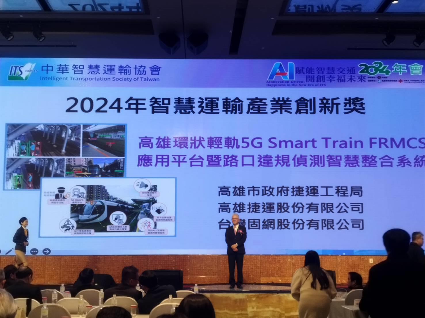12月20日舉行的「2024年智慧運輸獎頒獎儀式」,中華智慧運輸協會由施義芳理事長擔任頒獎人。捷運局由王彥清總工程司率領得獎團隊(高雄捷運股份有限公司、台灣固網股份有限公司)赴典禮現場受獎,並與來自各界的專家、學者共同見證創新成果。