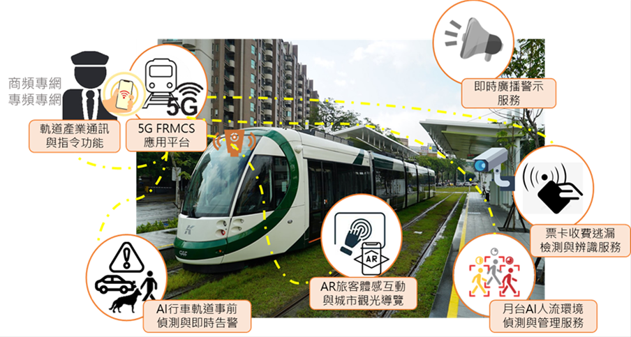 捷運局表示,「高雄環狀輕軌5G Smart Train FRMCS應用平台暨路口違規偵測智慧整合系統」,以高雄輕軌為核心試驗場域,透過5G FRMCS軌道通訊、即時廣播警示服務、月台AI人流影像分析、票卡收費逃漏檢測與辨識、軌道安全AI偵測與即時反饋、AR觀光導覽及互動體驗、高雄環狀輕軌號誌與路口交通違規偵測設備智慧整合等系統,實現了營運效率提升與降低風險,且充分利用高效能的管理工具與AI數據分析,不僅提升了系統的可靠性、可用性與可維修性,大幅強化營運安全,顯示出智慧科技在交通領域的無限潛力。