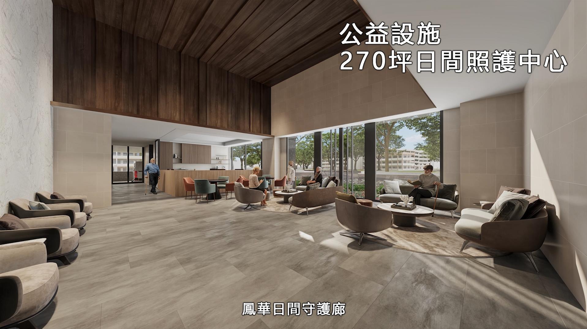 本案的公共與公益設施,包含室内270坪日間照顧中心及室内150坪環保局辦公室等,提供長輩白天的照護服務,包括生活照顧、餐飲服務、交通接送、健康促進活動、文康休閒活動,讓長輩在日間也能獲得專業的照顧和豐富的社交生活,並捐贈一座Ubike2.0車站,以落實大眾運輸導向之捷運城市政策。