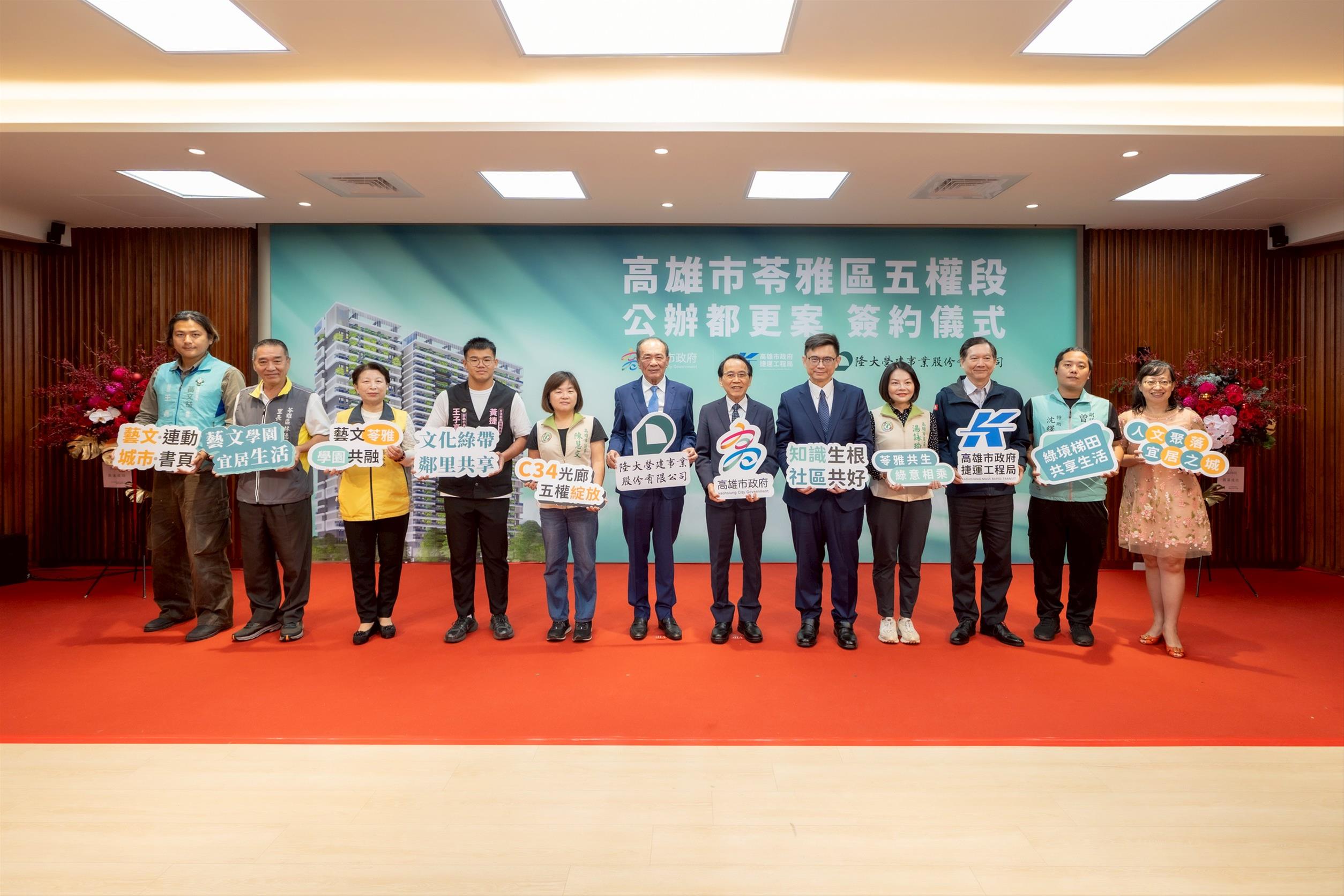 高雄市捷運局吳嘉昌局長表示,本案係陳市長上任來,捷運局完成的第8個土地開發簽約案件,基地鄰近輕軌C34五權國小站,完工後將增加400戶、1200人口數之輕軌使用量,另因底層設置商業店鋪及公益設施,亦可鼓勵市民利用輕軌前往,此外市府可分回權利價值權利金挹注捷運建設經費,是高雄市實踐TOD城市的典範之一。