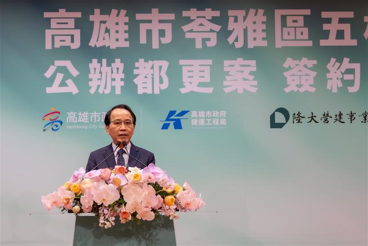 高雄市林欽榮副市長致詞時表示,苓雅清潔隊舊址,因屋齡已超過60年,故捷運局以公辦都更方式開發,除了提供環保局有新的辦公空間外,也提供高齡化社會所需的日照中心,因鄰近輕軌五權國小站,可鼓勵大眾運輸使用並提升周邊公共服務品質。