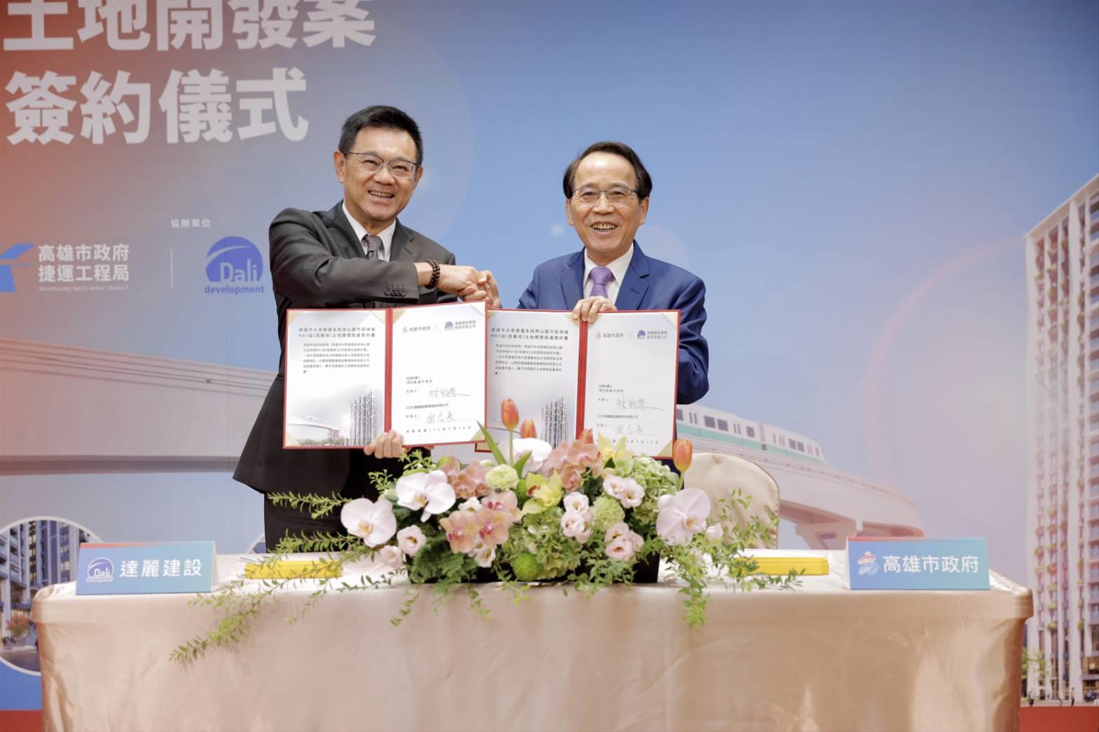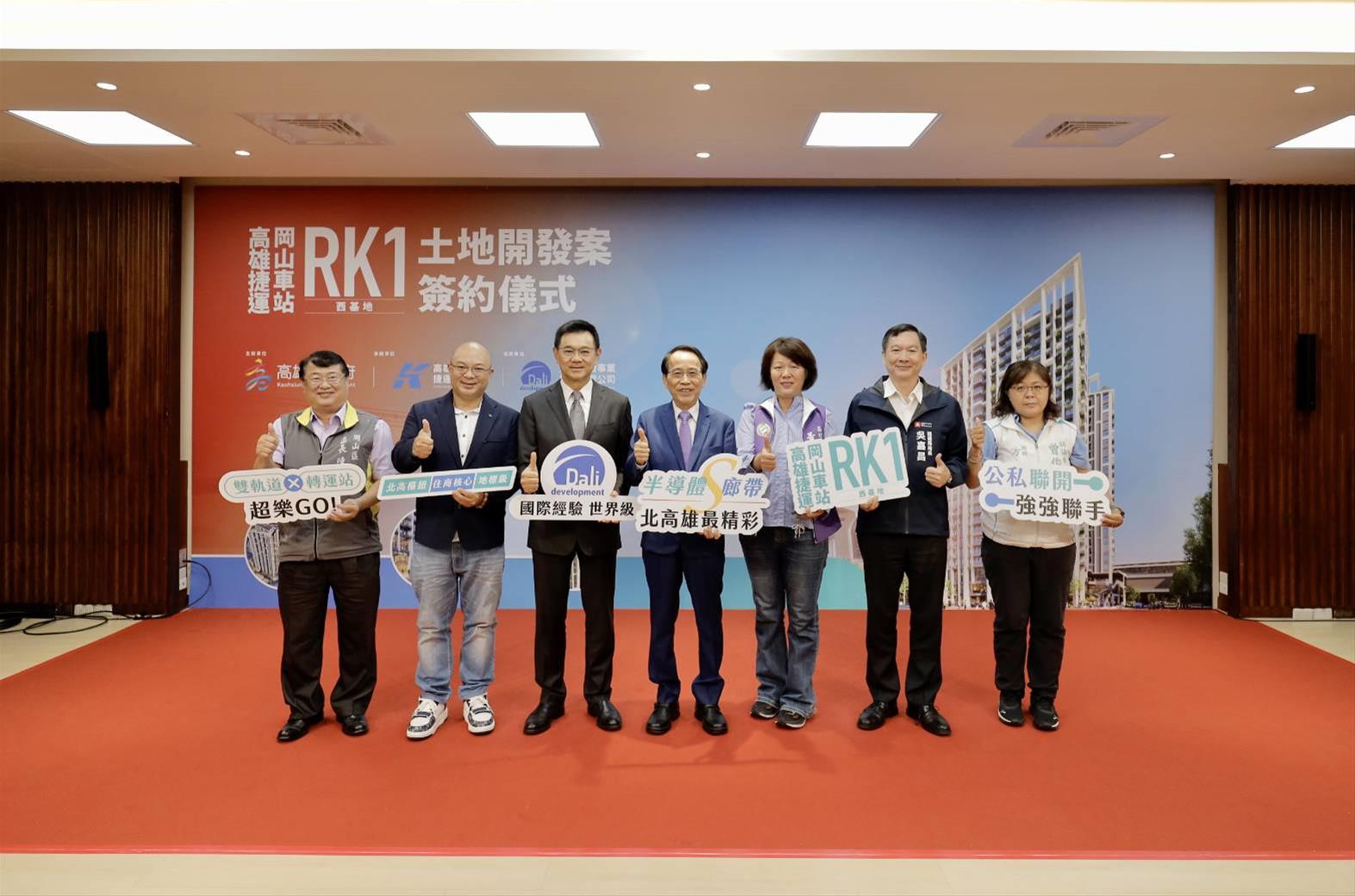 今日(12)上午市府舉辦高雄聯開RK1(西基地)案簽約儀式,由林欽榮副市長代表市府與達麗建設事業股份有限公司謝志長董事長簽訂開發合約,在市議會曾俊傑副議長、蔡武宏、黃秋媖等多位議員、助理先進、相關業界公會及區、里長的見證下,宣告北高雄首宗捷運聯合開發案正式啟動,象徵高雄捷運聯合開發邁向新的里程碑,本案也是今年繼O13、Y10站2案簽約後,市府完成的第3個聯合開發案,持續積極創造捷運生活核心及便捷友善的都市交通環境。