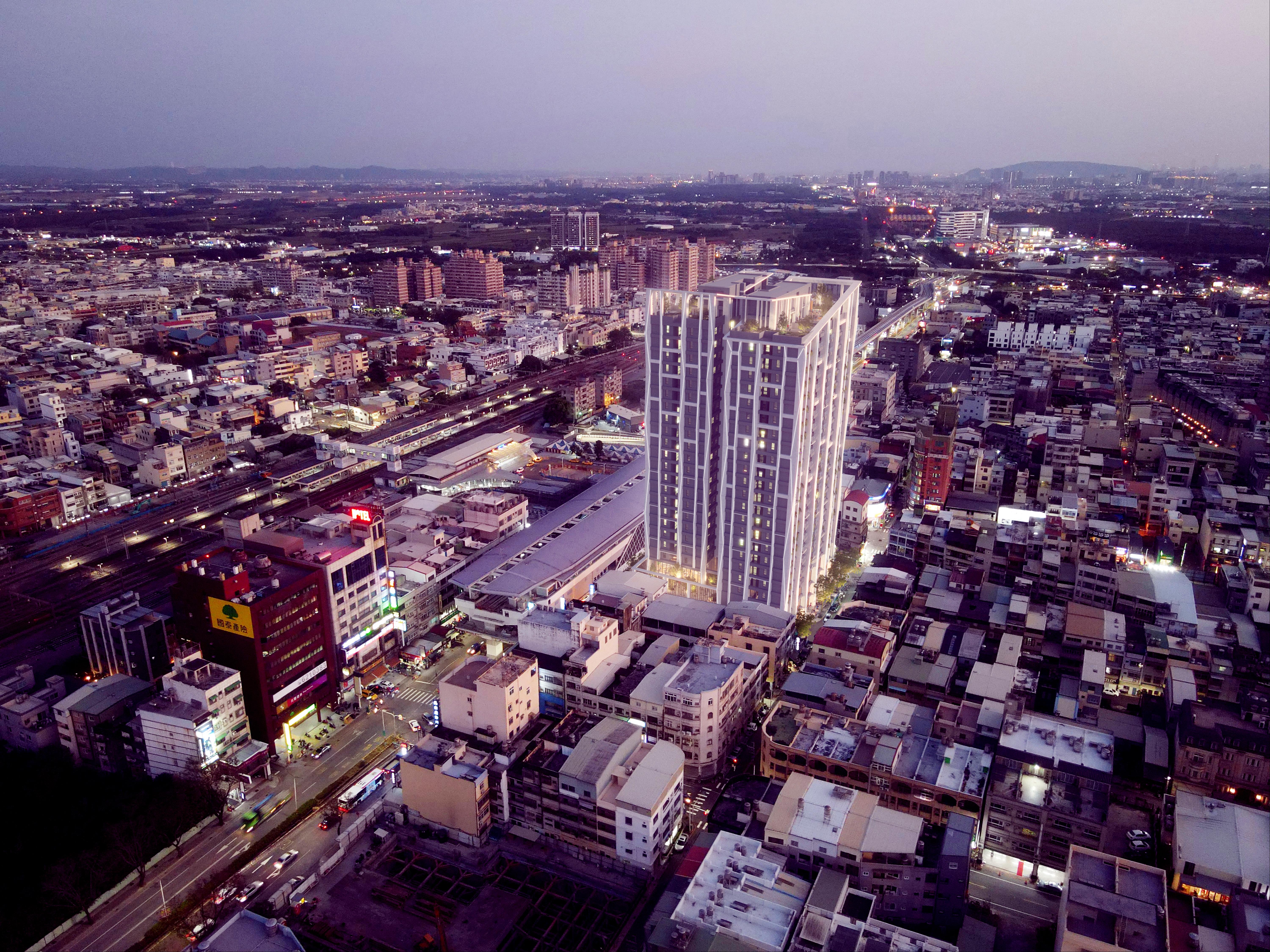 捷運局補充,本案投資人達麗建設特邀深耕高雄多年的原東聯合建築師事務所為本案規劃平面,並發揮基地最高使用效率,將捷運站西出口共構本開發大樓,增設戶外梯出入站動線,分流旅客與大樓住戶,保持人流暢通;在街區規劃上有一樓的景觀人行道、街角廣場,以沿街綠意質地削弱建築的壓迫感,更能創造更優質的步行體驗。建築外觀則邀請陳廷杰建築師事務所設計,以岡山特有的白茅草平原、典寶溪生態作為發想;結合岡山老街與科技想望,將RK1樹立為人文與自然、歷史與未來,相互呼應的城市生態指標,改寫岡山人的生活風景,創造岡山地區新地標。