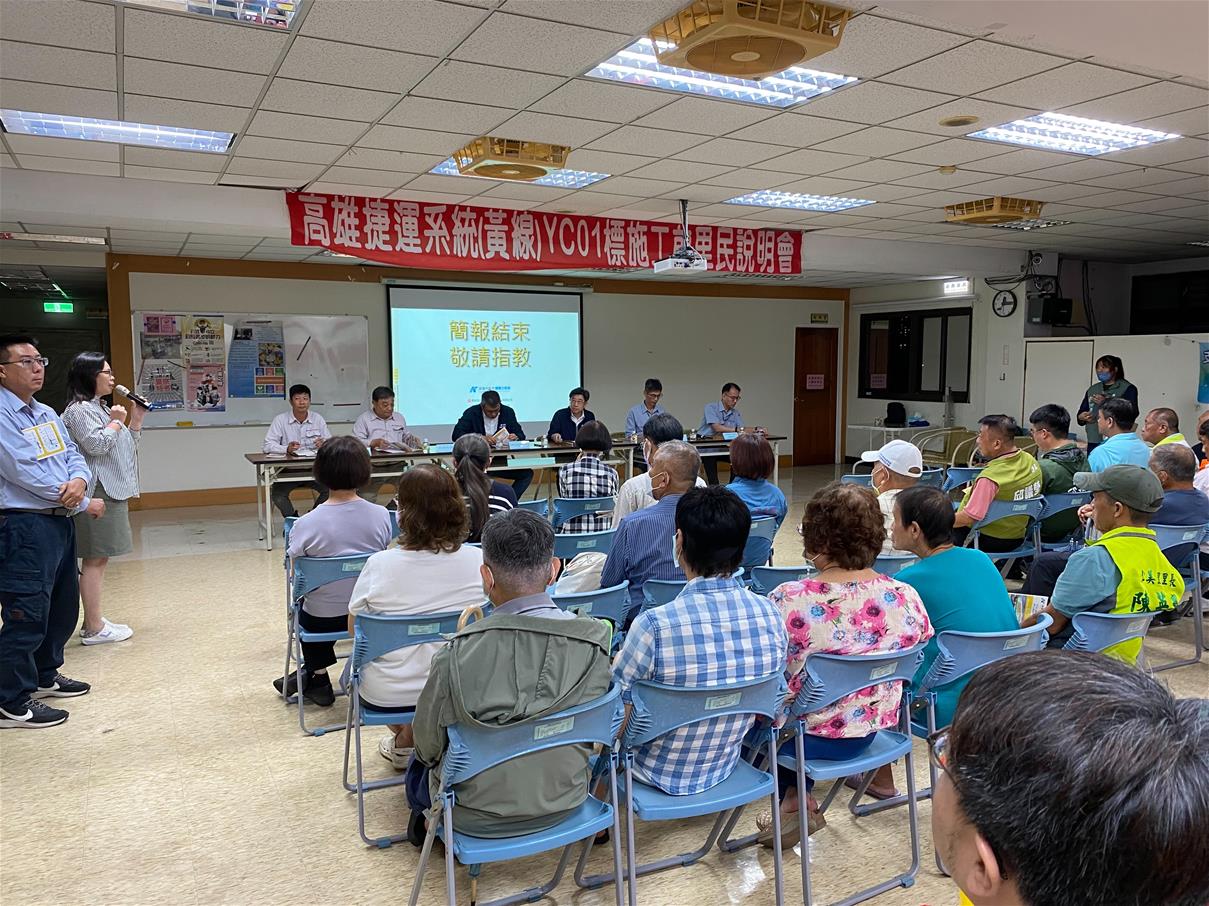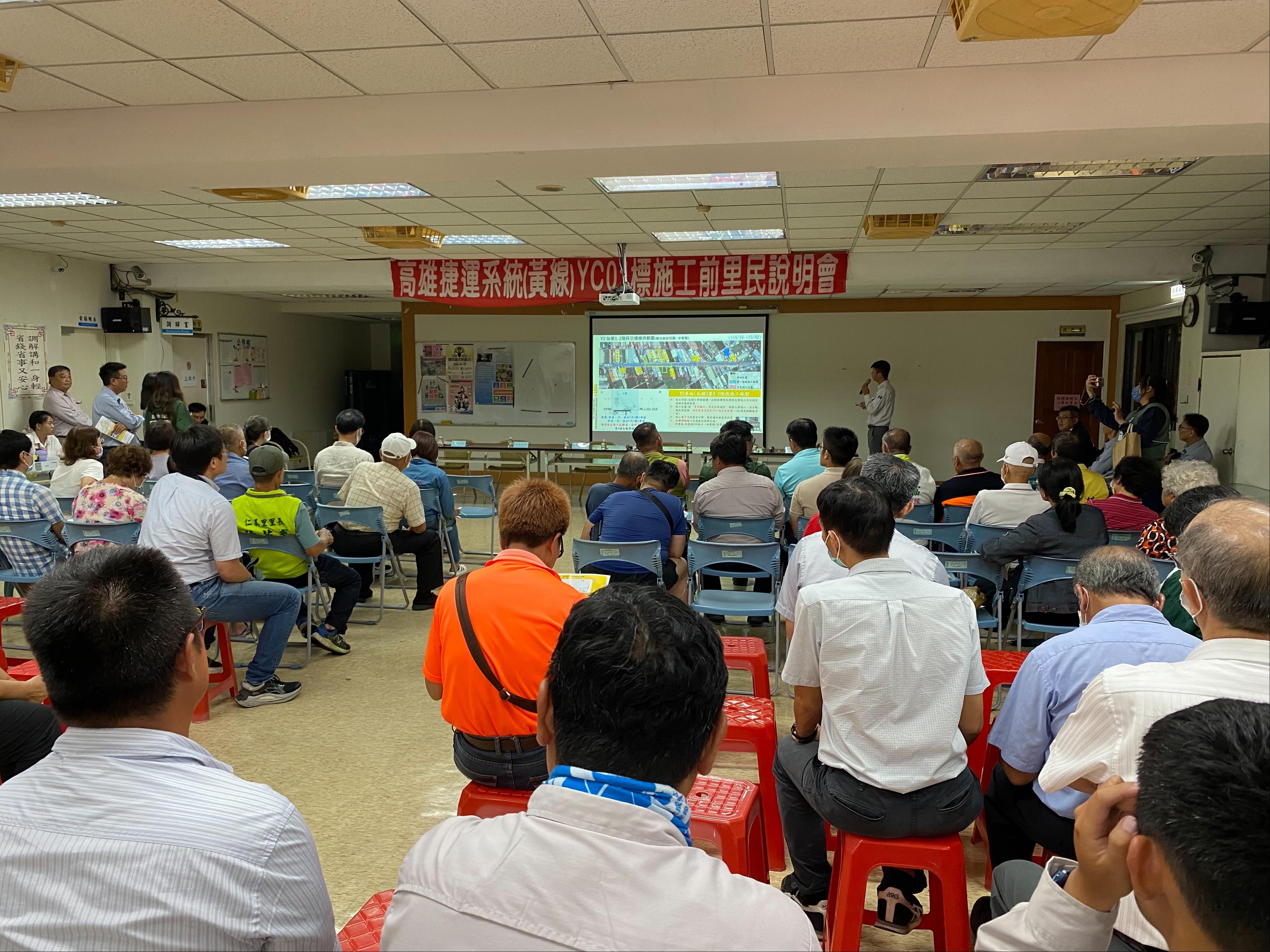 高雄捷運黃線預計於今(114)年7月中旬進入神農路至大埤路(Y1-Y3)第1階段之交維施工作業,黃線YC01標統包商特於昨(7/10)日晚間於鳥松區公所舉辦施工前說明會,現場邱俊憲議員、黃飛鳳議員本人親自出席,邱議瑩委員、林岱樺委員及江瑞鴻議員、吳利成議員、張勝富議員等由服務處團隊代表與會;鳥松區謝唐欽里長、坔埔里黃永順里長、仁美里陳英武里長、華美里邱宏棋等里長親自參加出席,此外沿線居民、大樓管委會、民意代表及廠家亦共同出席與會,近百人一同關心捷運建設。