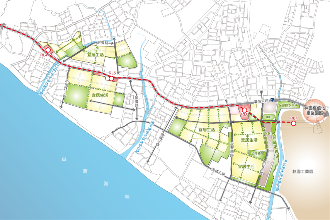 另行政院也要求市府配合國家住宅政策,於RL4、RL5、RL6等站辦理TOD及土地開發時,納入社會住宅之規劃及考量,以利周邊產業園區之員工可以就近居住及工作,故本局於RL4、RL5、RL6站旁規劃捷運開發區,並配合產業與地方發展策略、TOD與社會住宅等土地開發策略,持續研擬與實施提升運量與財務之有效措施。