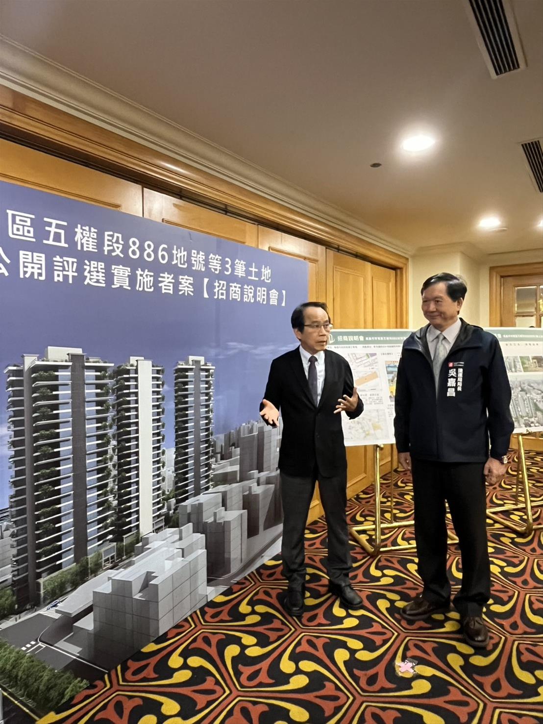捷運局吳嘉昌局長說明,本案開發基地鄰近輕軌C34五權國小站,完工後市府分回部分可以權利價值權利金支付,將挹注捷運建設,並取得公益設施,包含室内270坪日間照顧中心及室内150坪環保局辦公室等,滿足地區社會福利服務需求。在公開透明的評選機制下,市府將綜合評選具財務與開發能力且提出最具規劃願景的開發團隊,兼顧整體品質與公共利益。