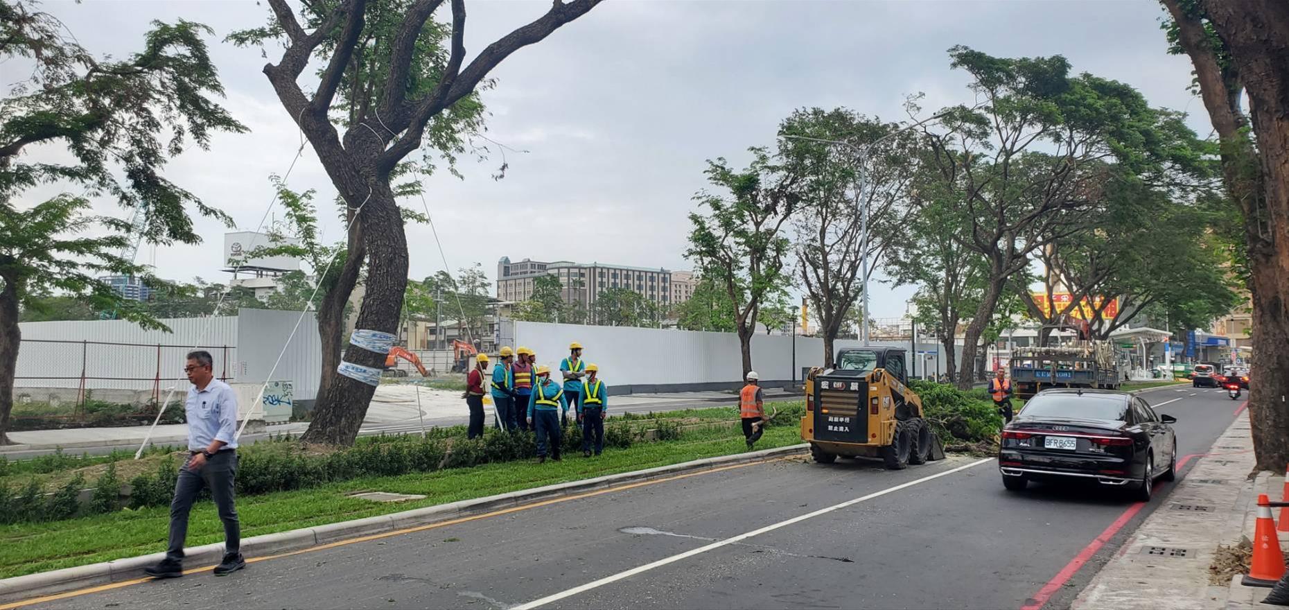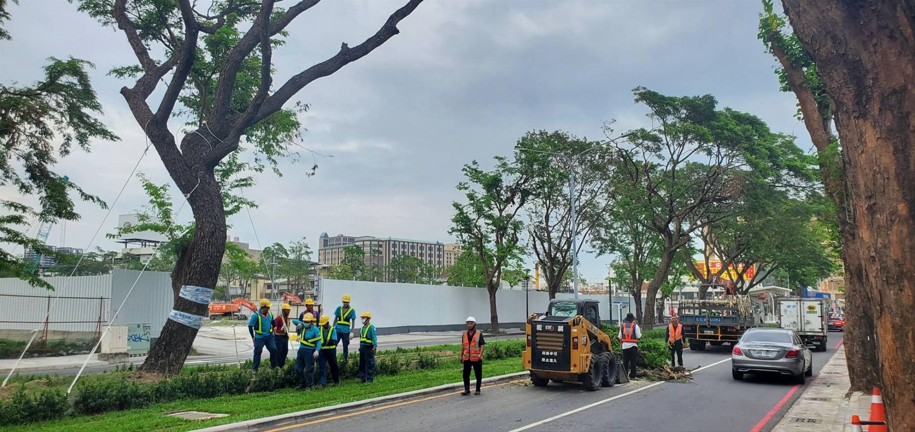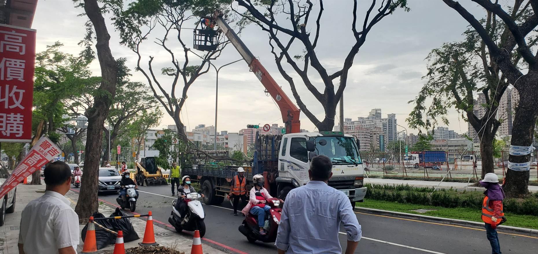 因應康芮颱風,捷運局與公園處修剪輕軌大順路雨豆樹增強抗風韌性
