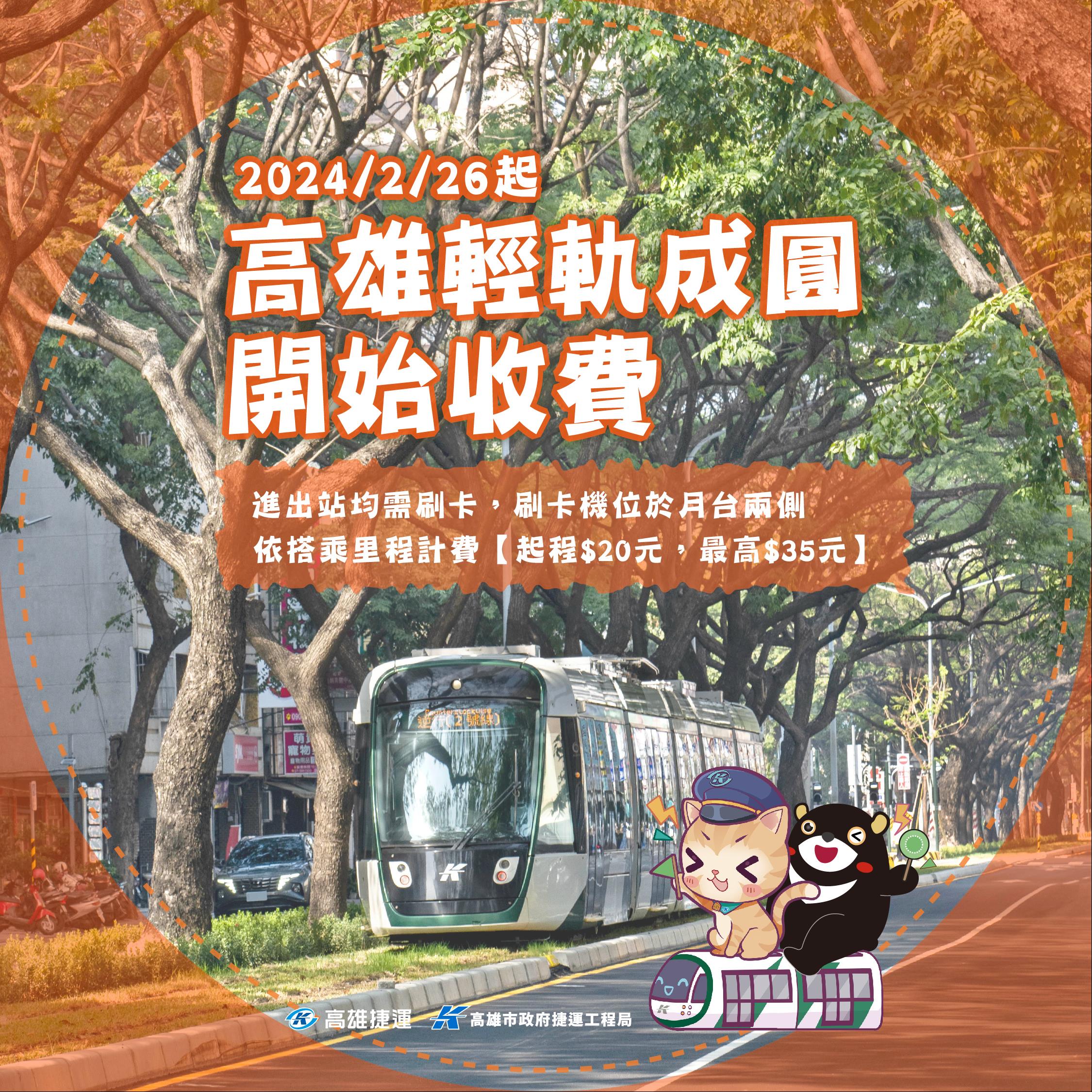 輕軌成圓試營運免費搭乘活動於2/25結束,自2/26起採里程計價收費