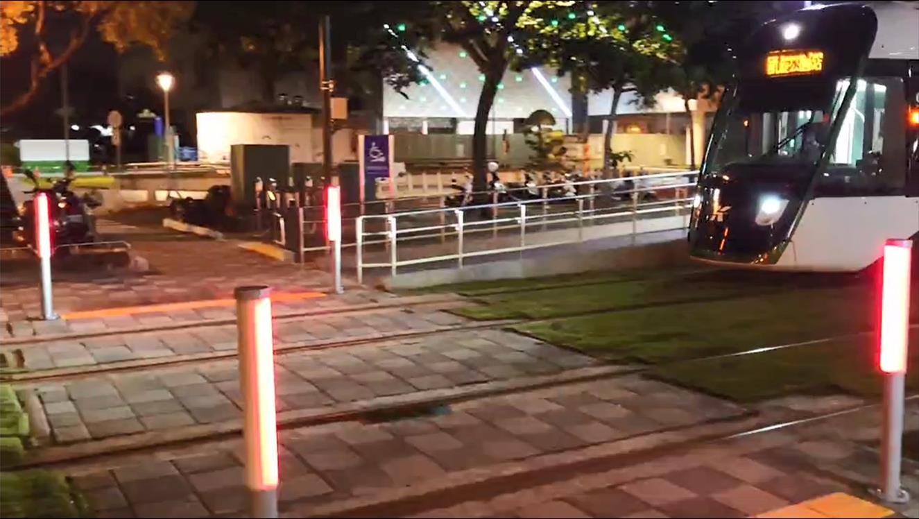 有別於紅橘線捷運系統,高雄輕軌行經路線與平面道路交織,針對交織路口,輕軌設計時已於路口建置安全設備,維護用路人安全。