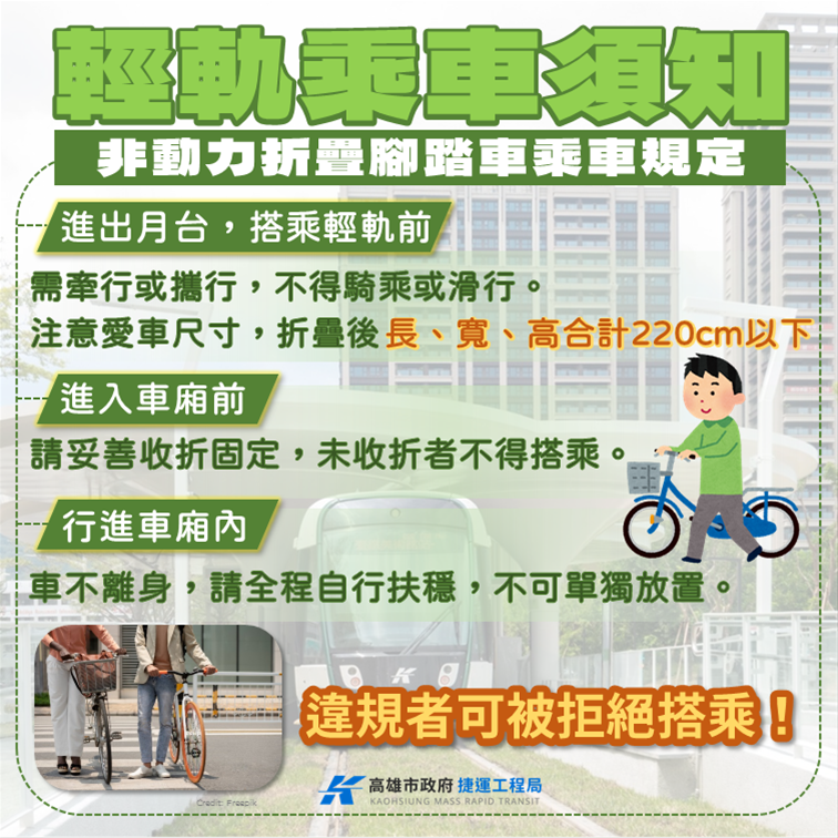 ※輕軌搭乘小提醒:折疊式腳踏車搭乘輕軌須知※