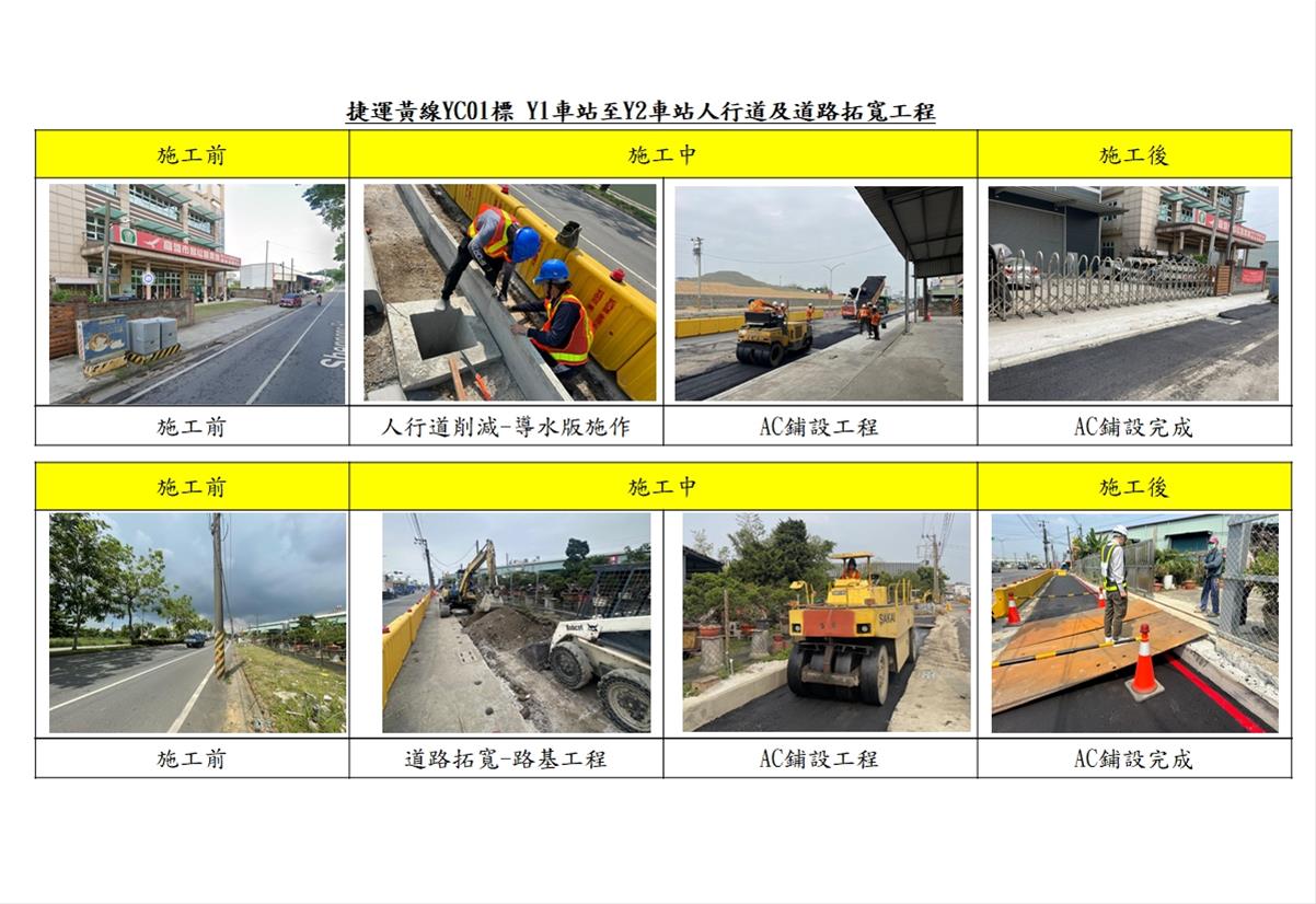 捷運黃線YC01標- Y1車站至Y2車站人行道及道路拓寬工程