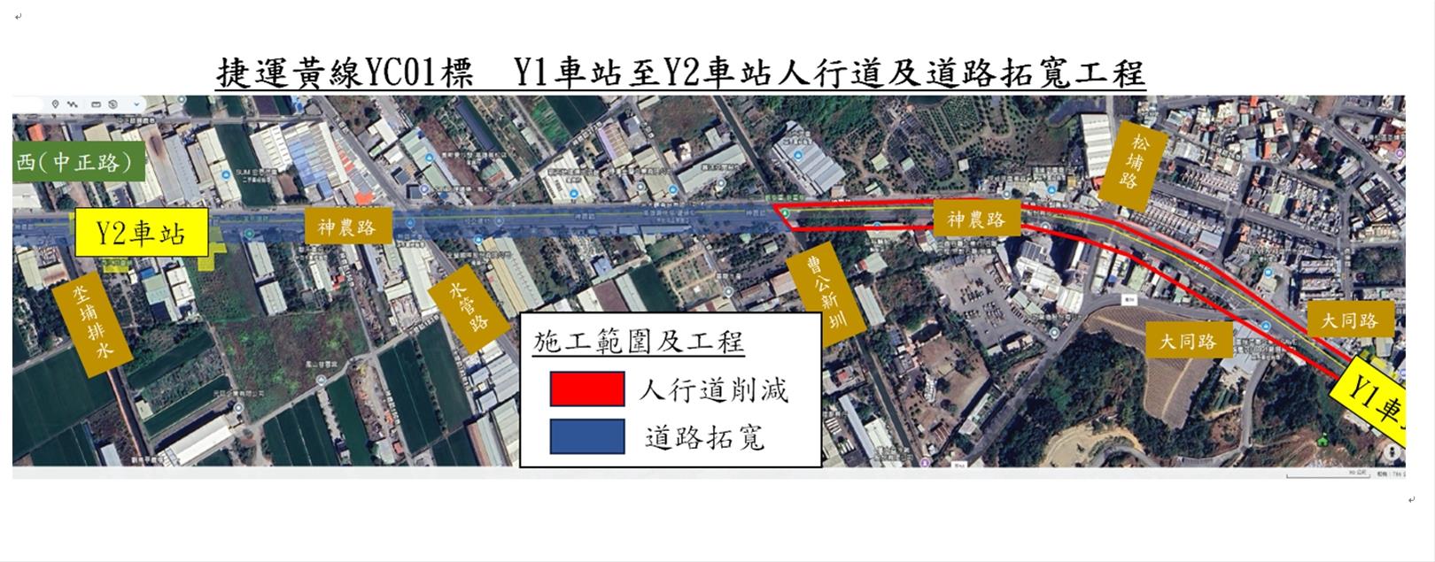 高雄都會區大眾捷運系統都會線(黃線)YC01標土建及設施機電統包工程- Y1車站至Y2車站人行道及道路拓寬工程施工說明: