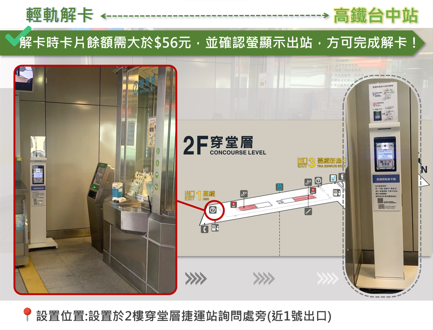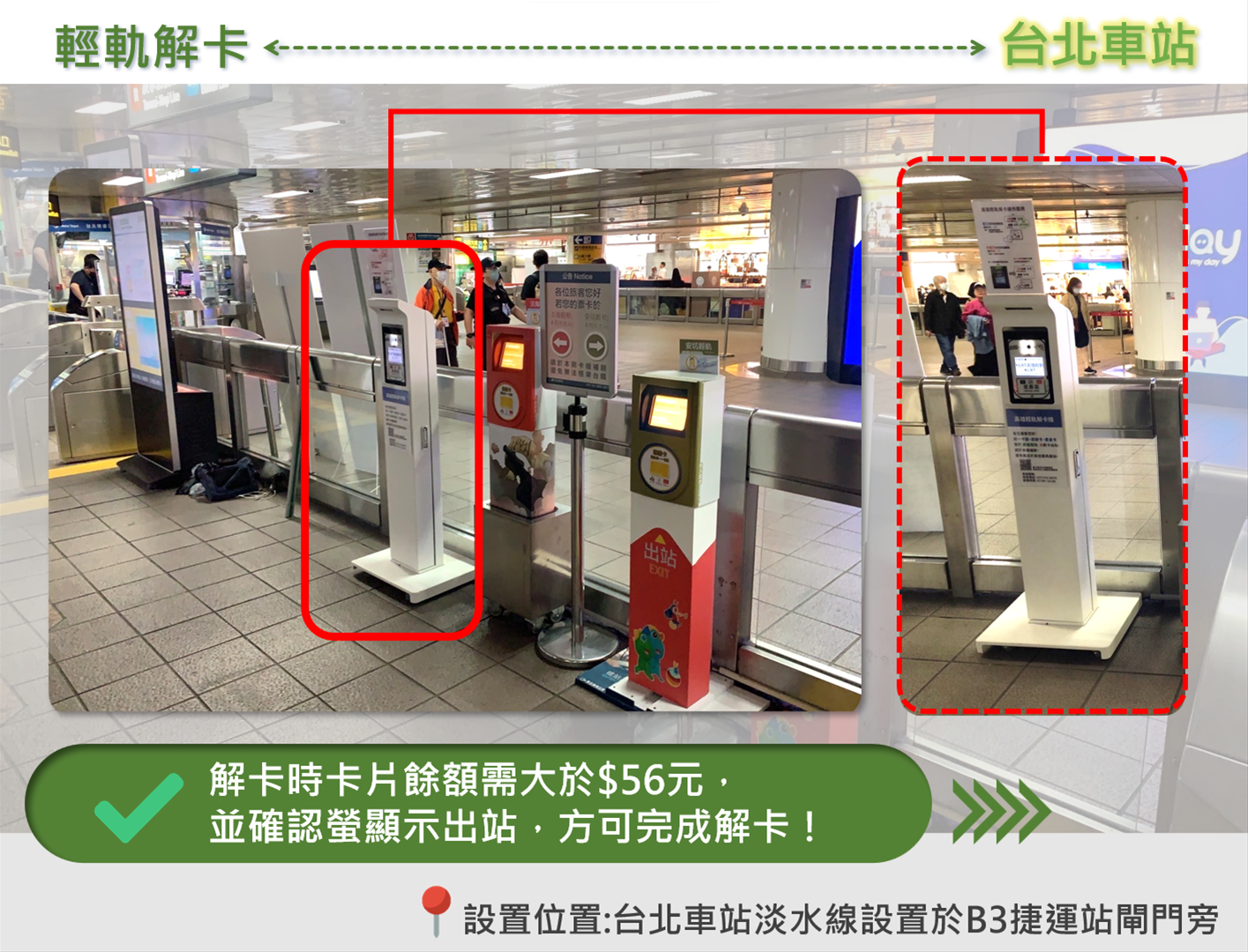 貼心體醒:解卡時卡片餘額需大於$56元,並確認螢幕顯示出站,方可完成解卡唷!
