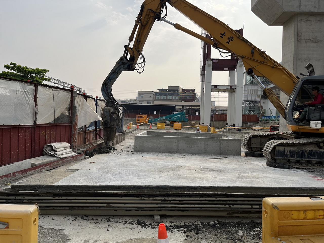113.04.06 跨站天橋P3電梯基礎鋼板樁拔樁作業