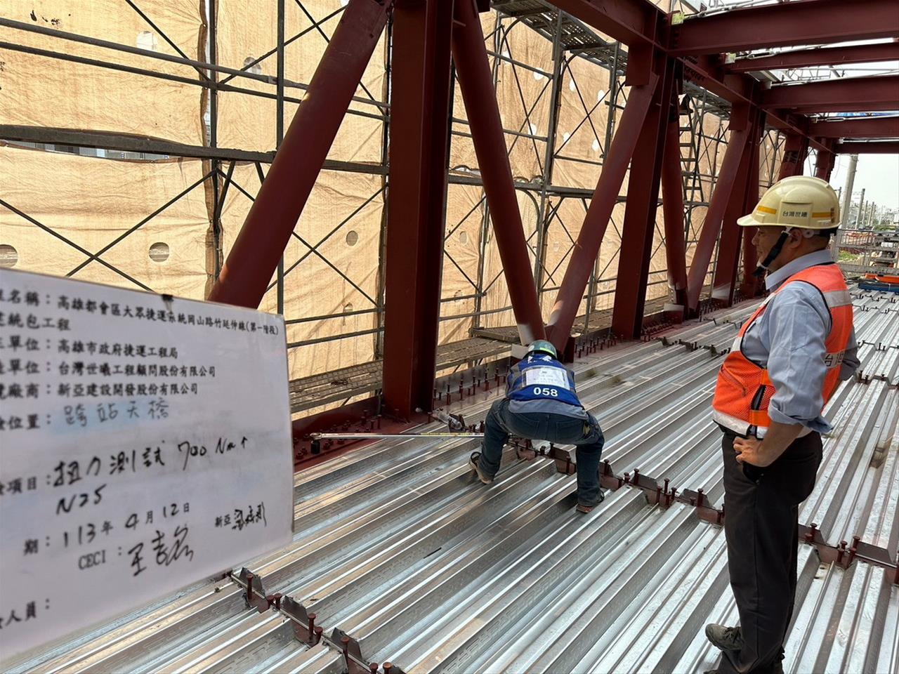 113.04.12 跨站天橋桁架第1單元鋼構地組完成螺栓鎖固扭力測試