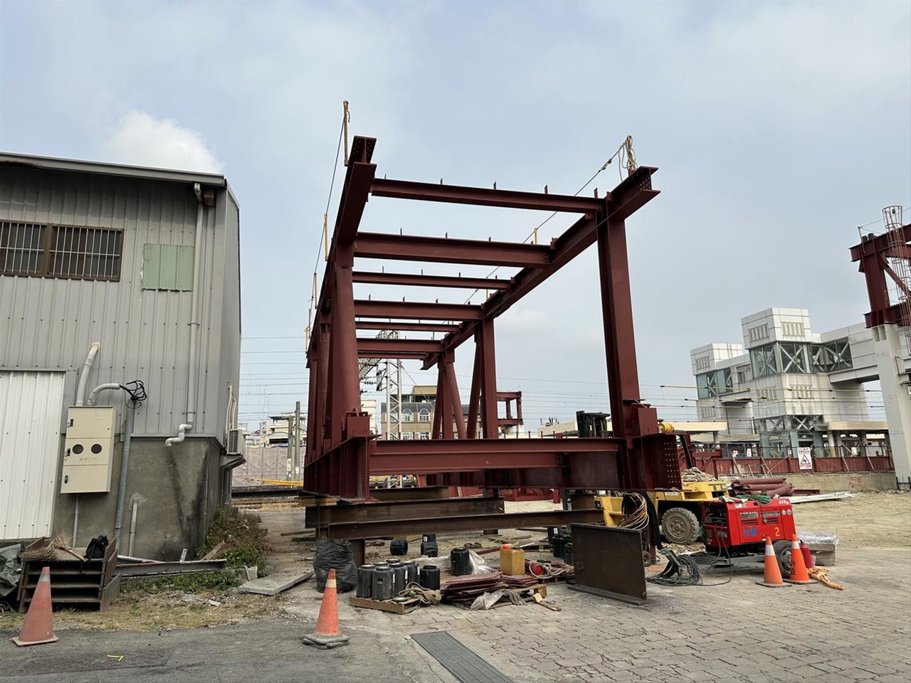 113.04.01 跨站天橋桁架第1單元鋼構材料進場及地組作業