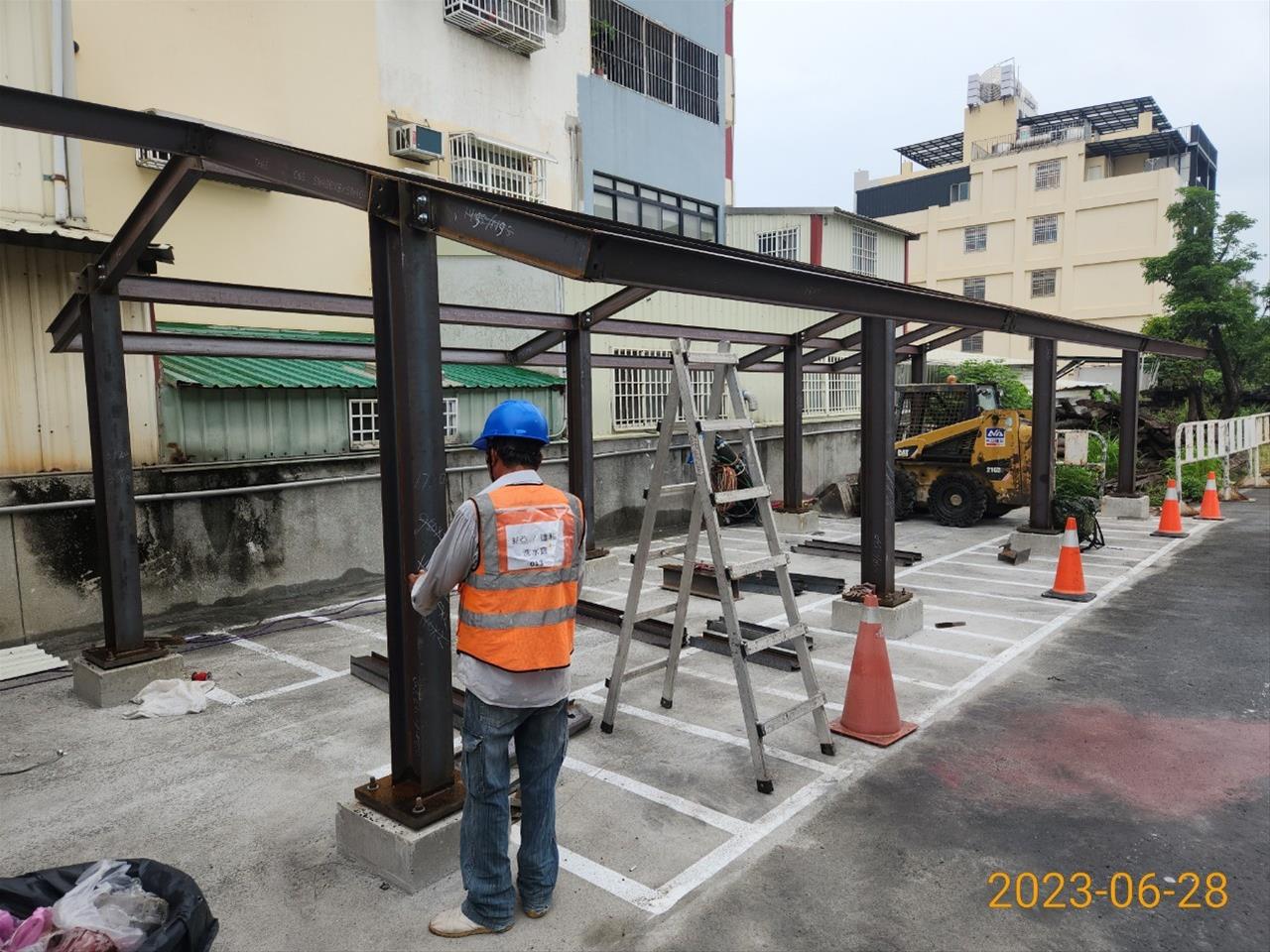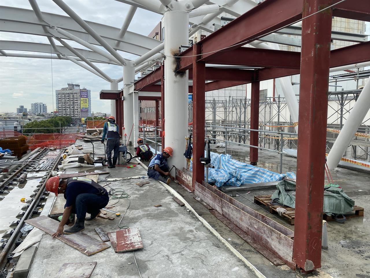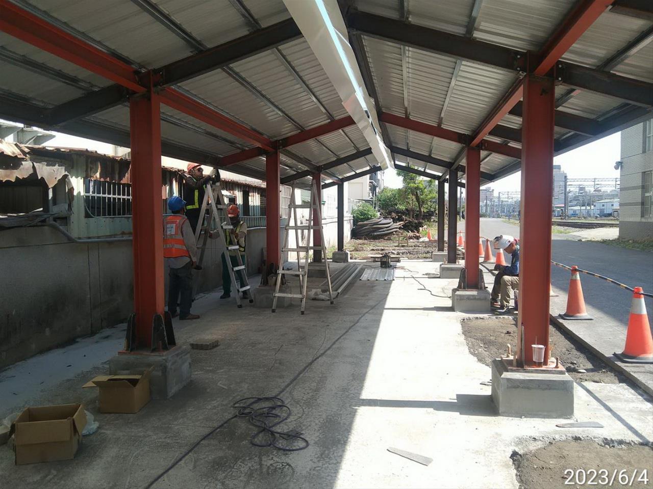 112.06.04 跨站天橋新建機車棚(第一區)鋼構組立作業