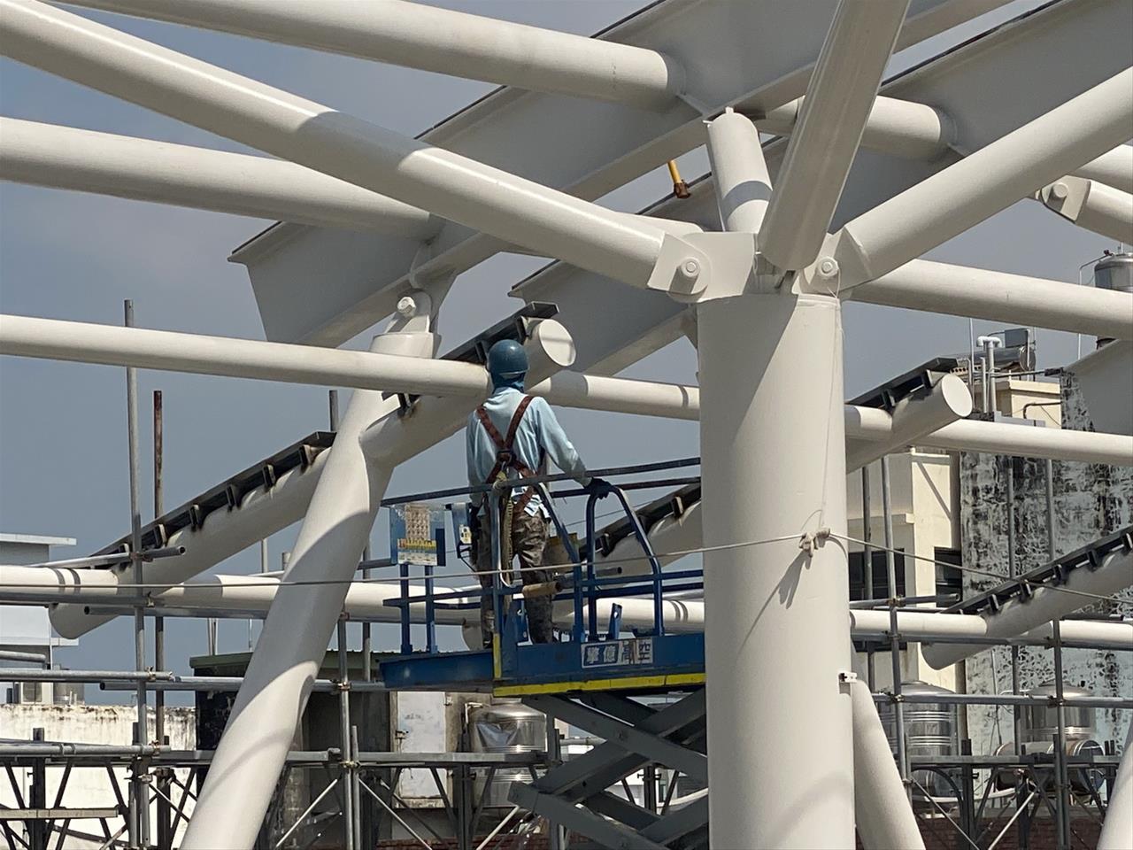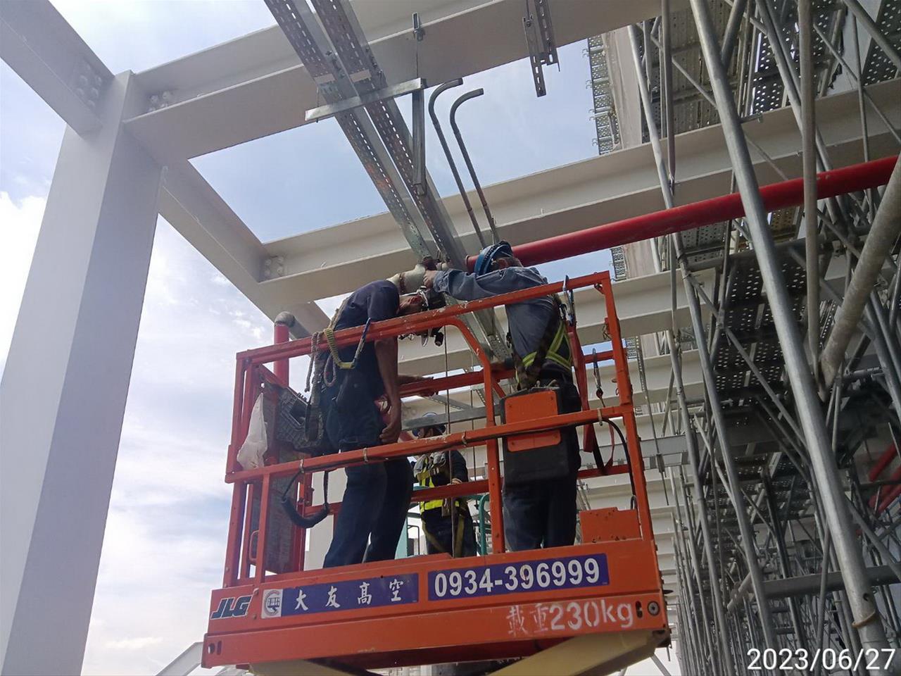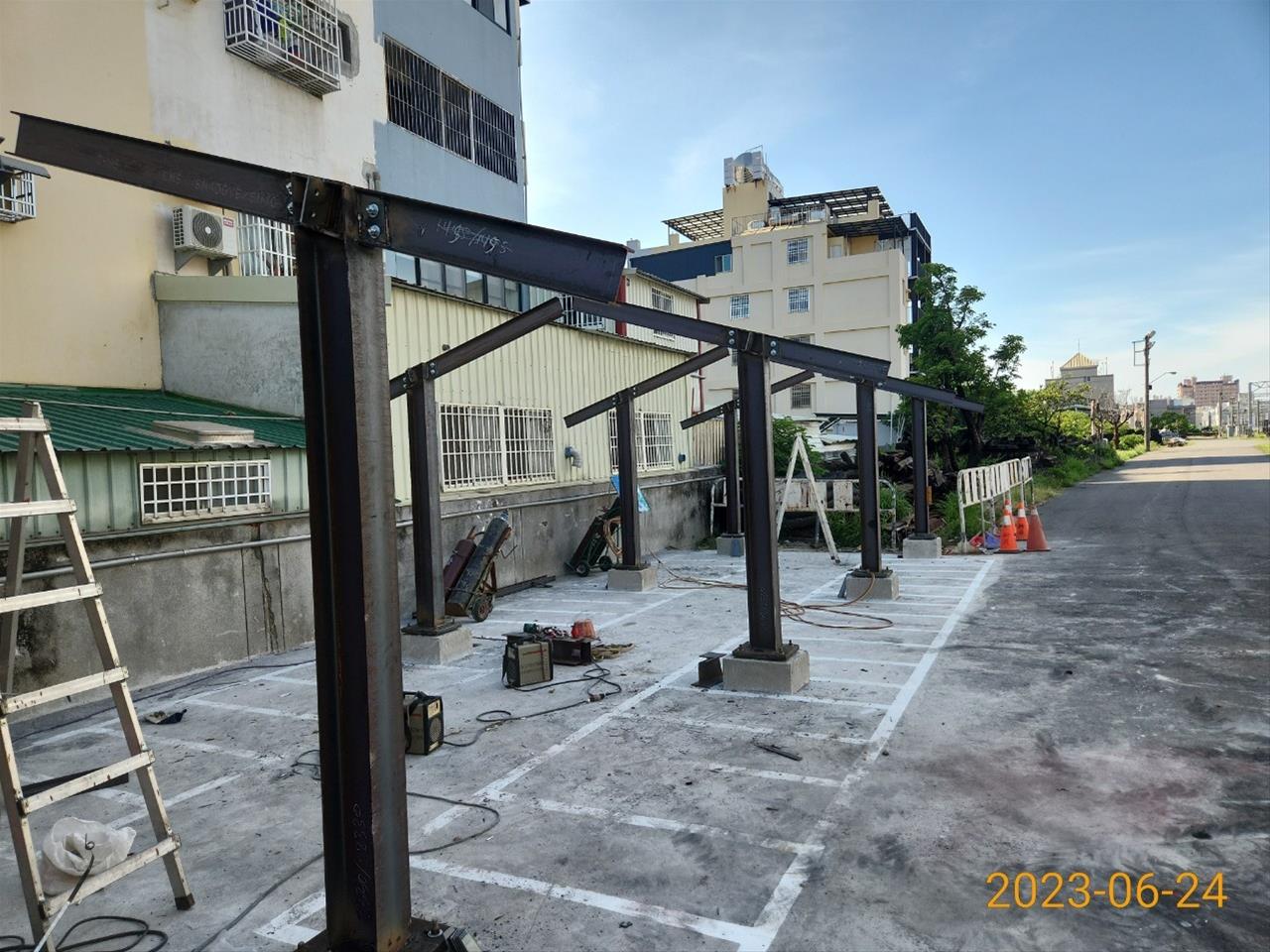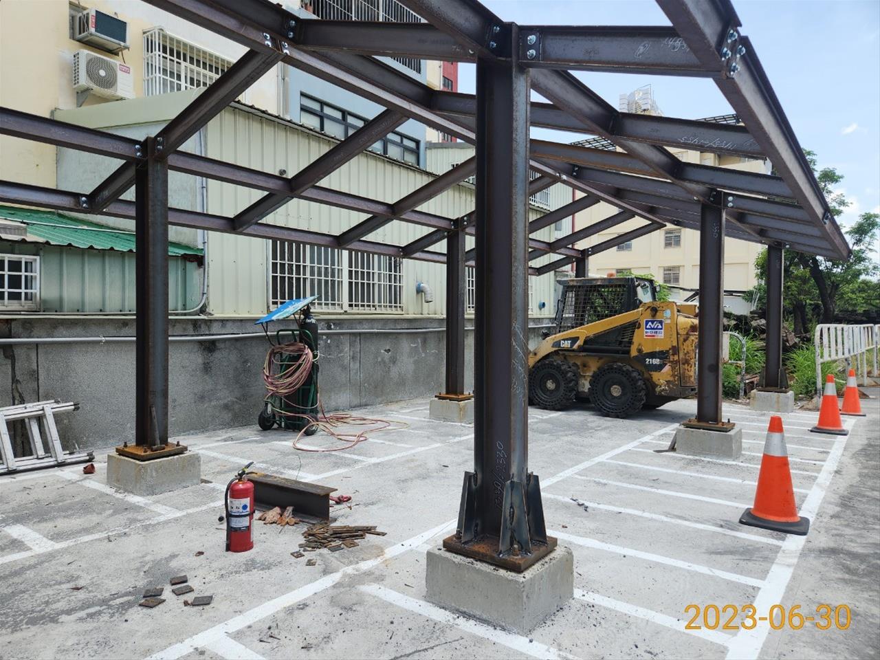 112.06.04 跨站天橋新建機車棚(第一區)鋼構組立作業
