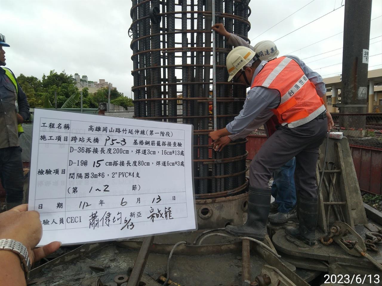 112.06.13 跨站天橋基樁編號P5-3鋼筋籠組搭吊放查驗