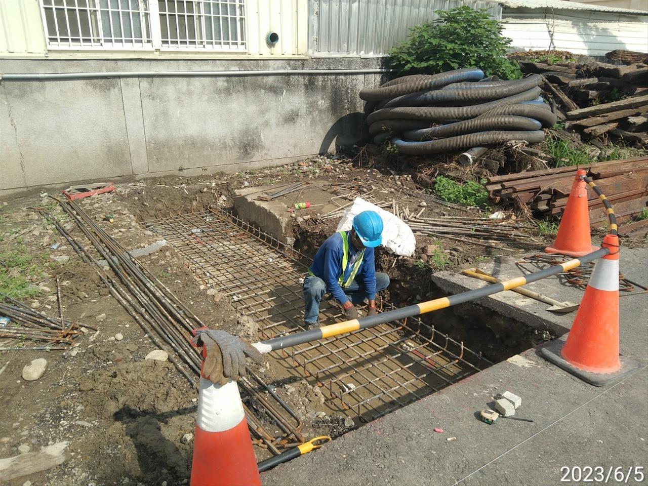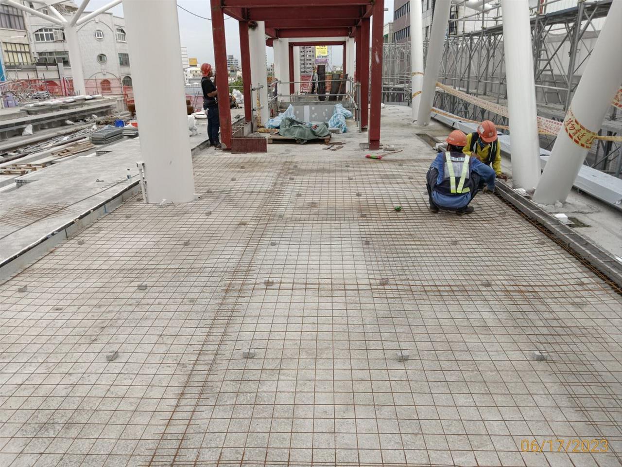 112.06.05 跨站天橋新建機車棚(第二區)基礎鋼筋綁紮作業