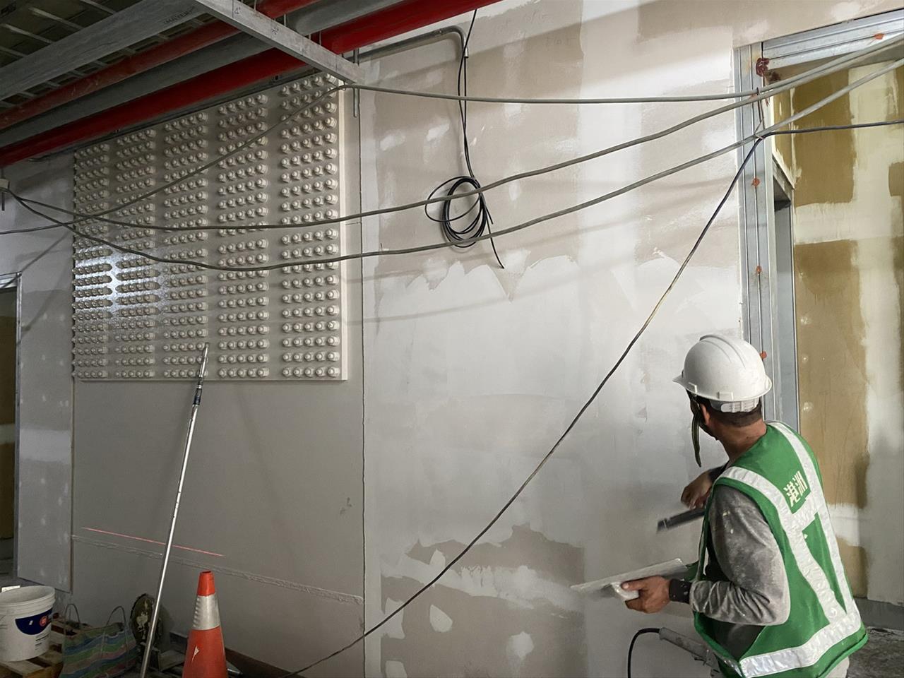 112.06.02 RK1車站穿堂層輕隔間板片填縫及批土施作