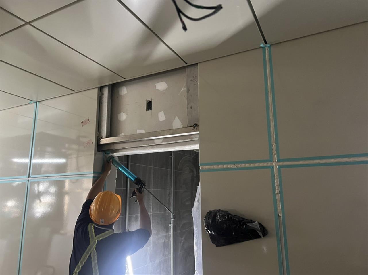 112.12.10車站穿堂層琺瑯板填縫施工