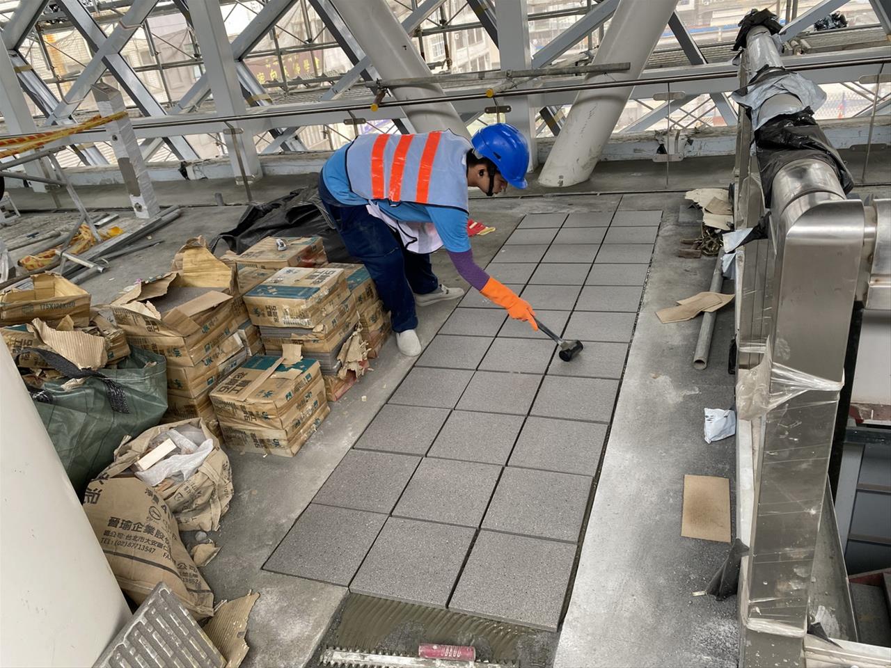 112.12.24穿堂層珐瑯板收邊異型塊施工