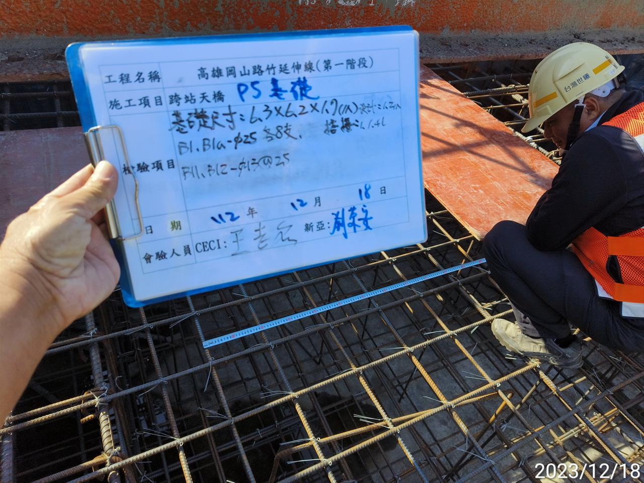 112.12.18跨站天橋P5基礎鋼筋查驗及混凝土澆置
