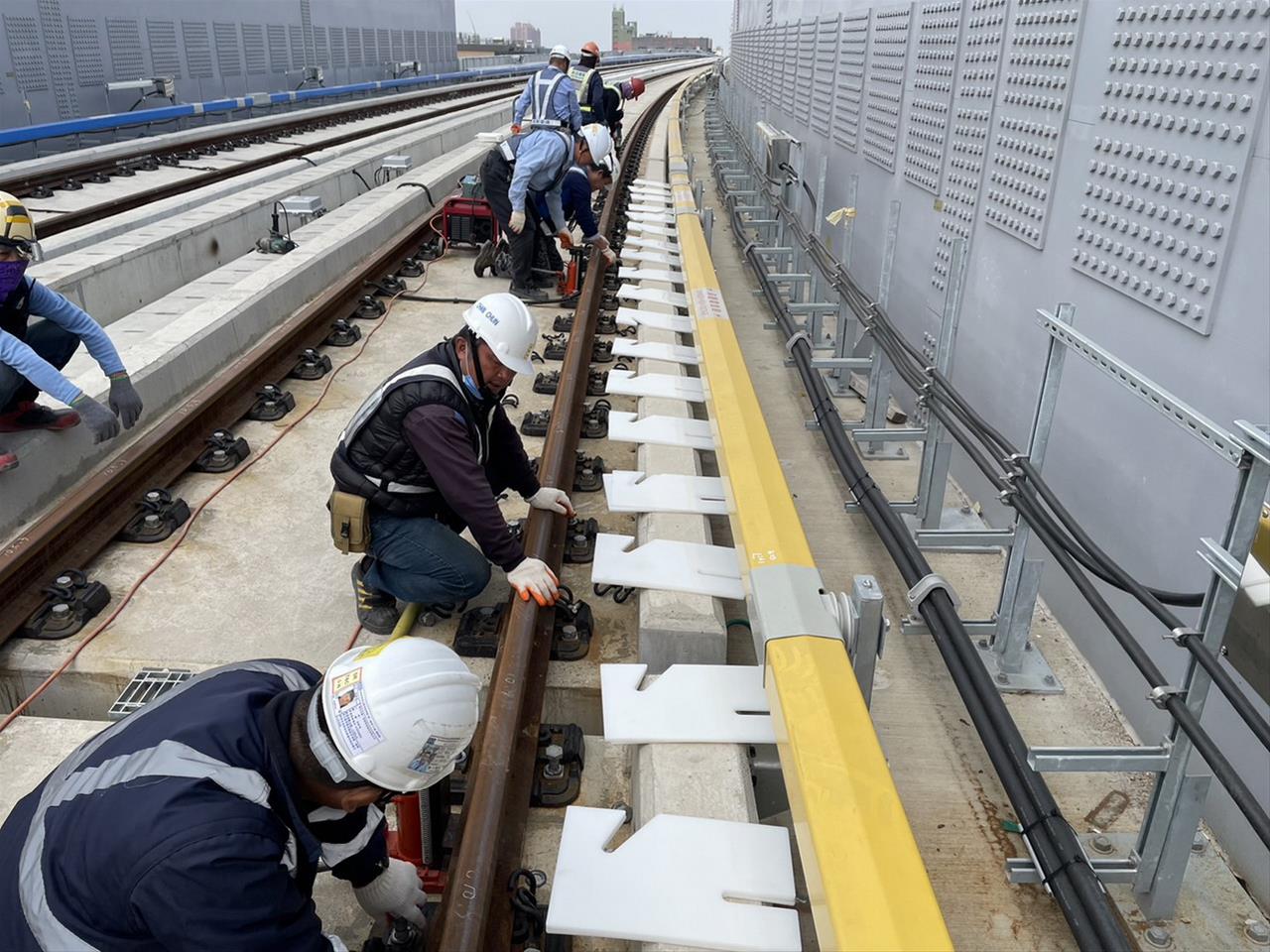 113.01.14高架橋段軌道側照明燈具安裝及拉接線