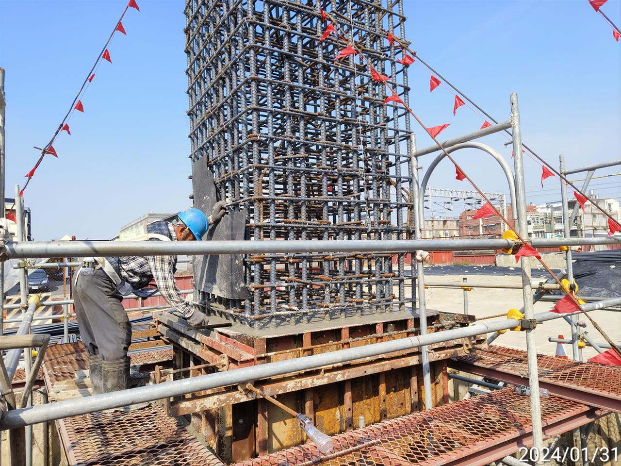 113.01.31跨站天橋P3墩柱第一升層混凝土澆置