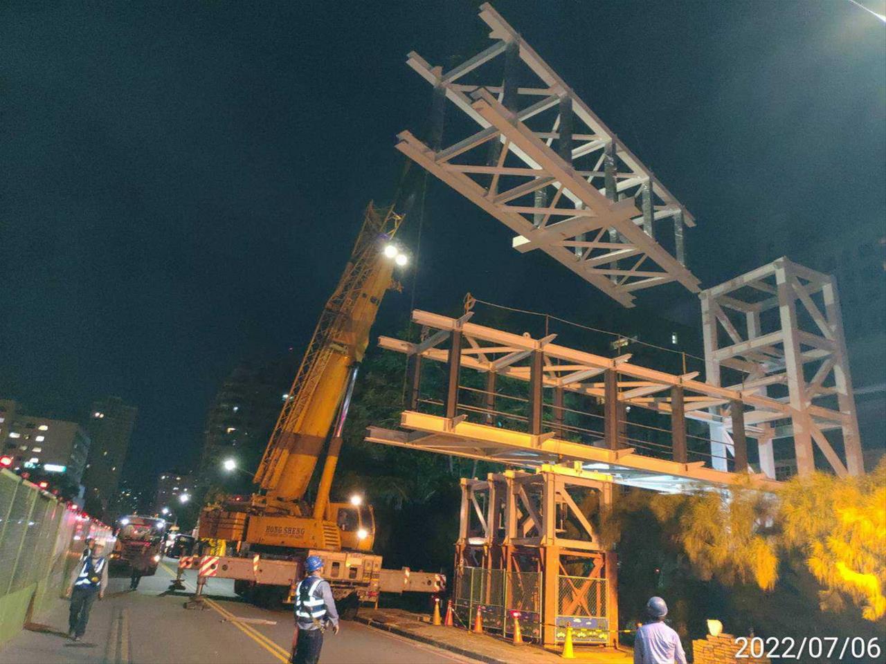 111.07.06 中華藝校天橋過路段鋼構吊裝