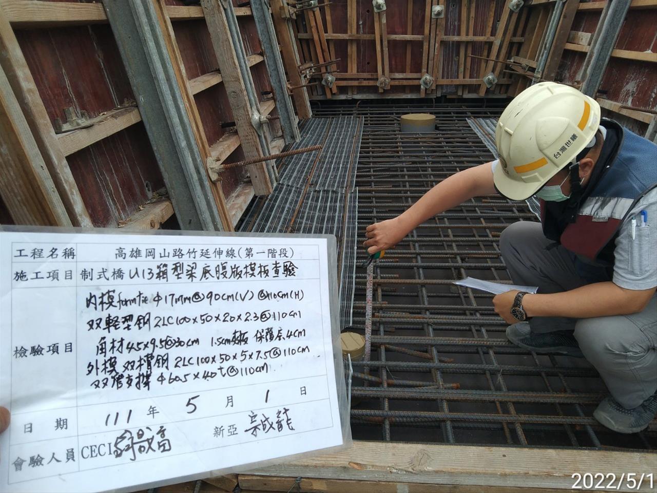 111.05.01 橋梁段上部結構U13跨底腹版模板查驗