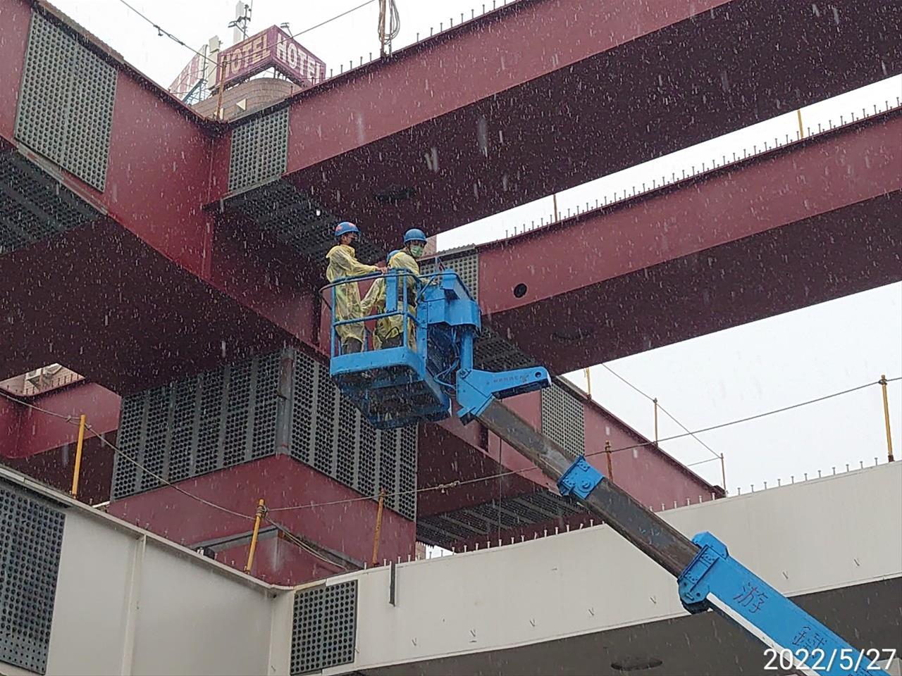 111.05.12 RK1 車站D3東側小帽樑吊裝、U2〜U4月台層大樑焊接