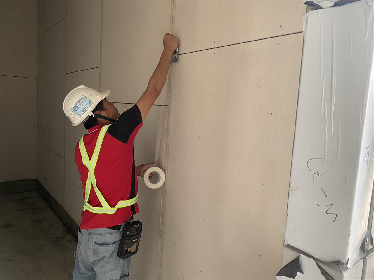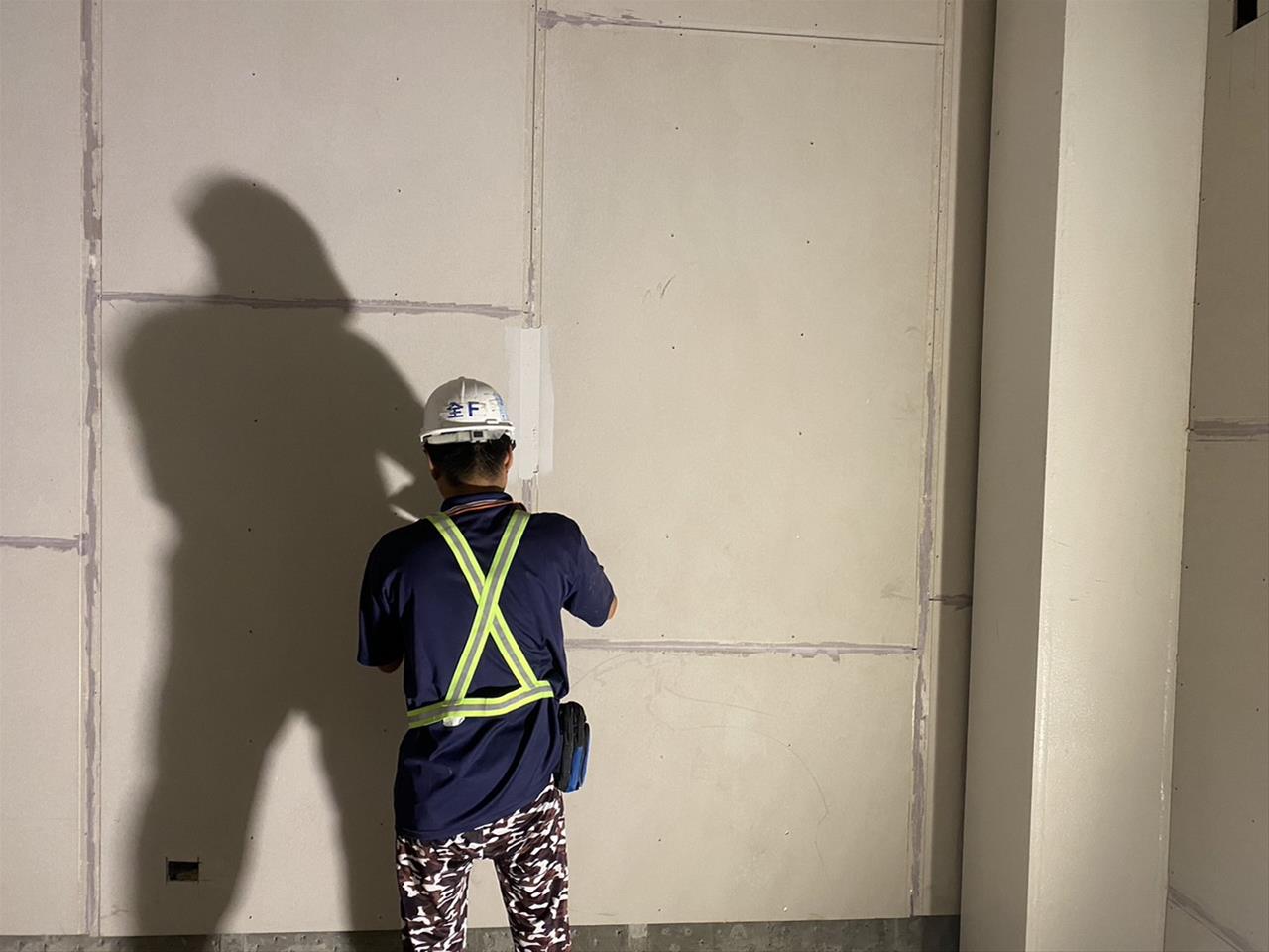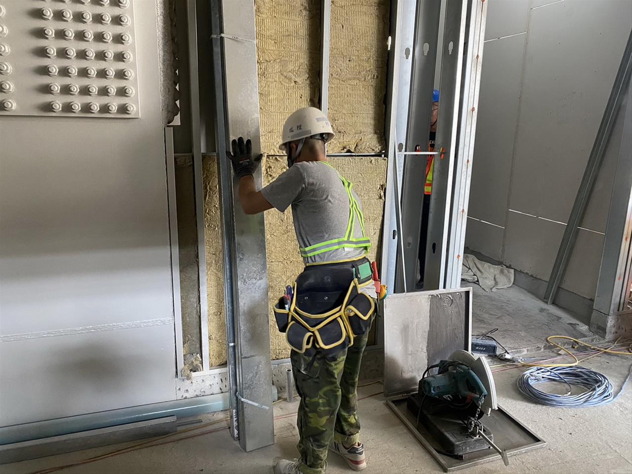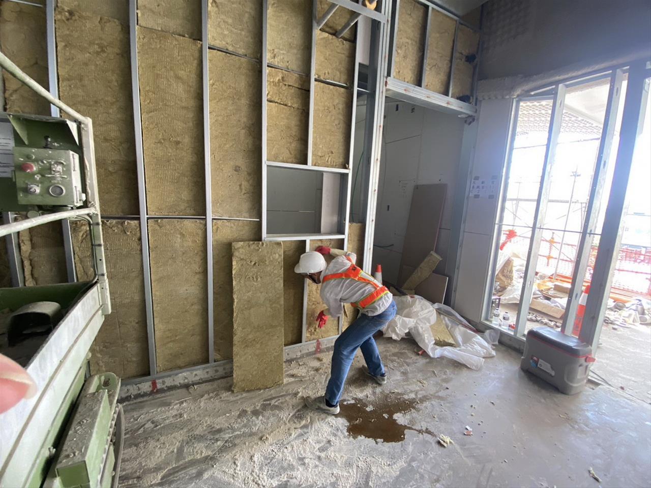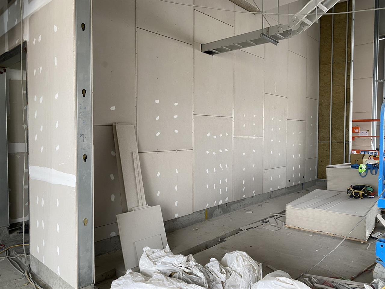 112.05.04 RK1車站穿堂層輕隔間牆骨架及封板+岩棉填塞施作