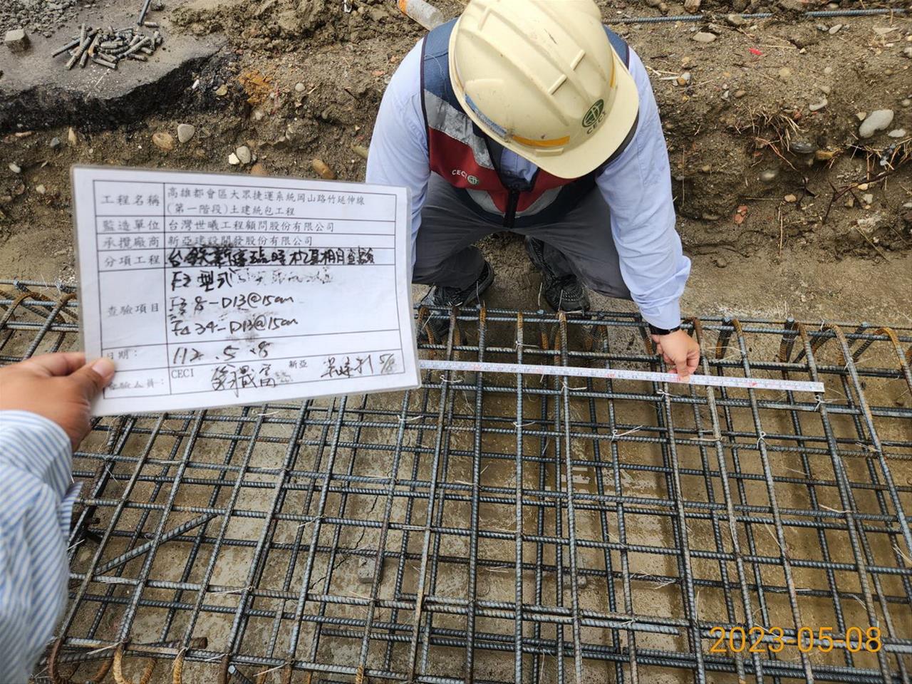 112.05.08 跨站天橋台鐵新建臨時機車棚基礎鋼筋綁紮查驗