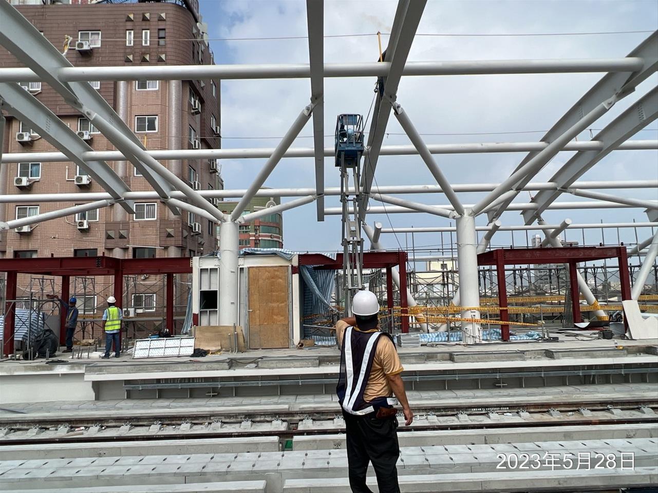 112.05.24 跨站天橋台鐵新建臨時機車棚鋼構組立