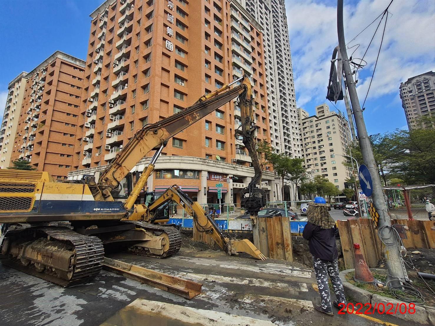 111.02.08 龍德路口排水箱涵鋼板樁打設