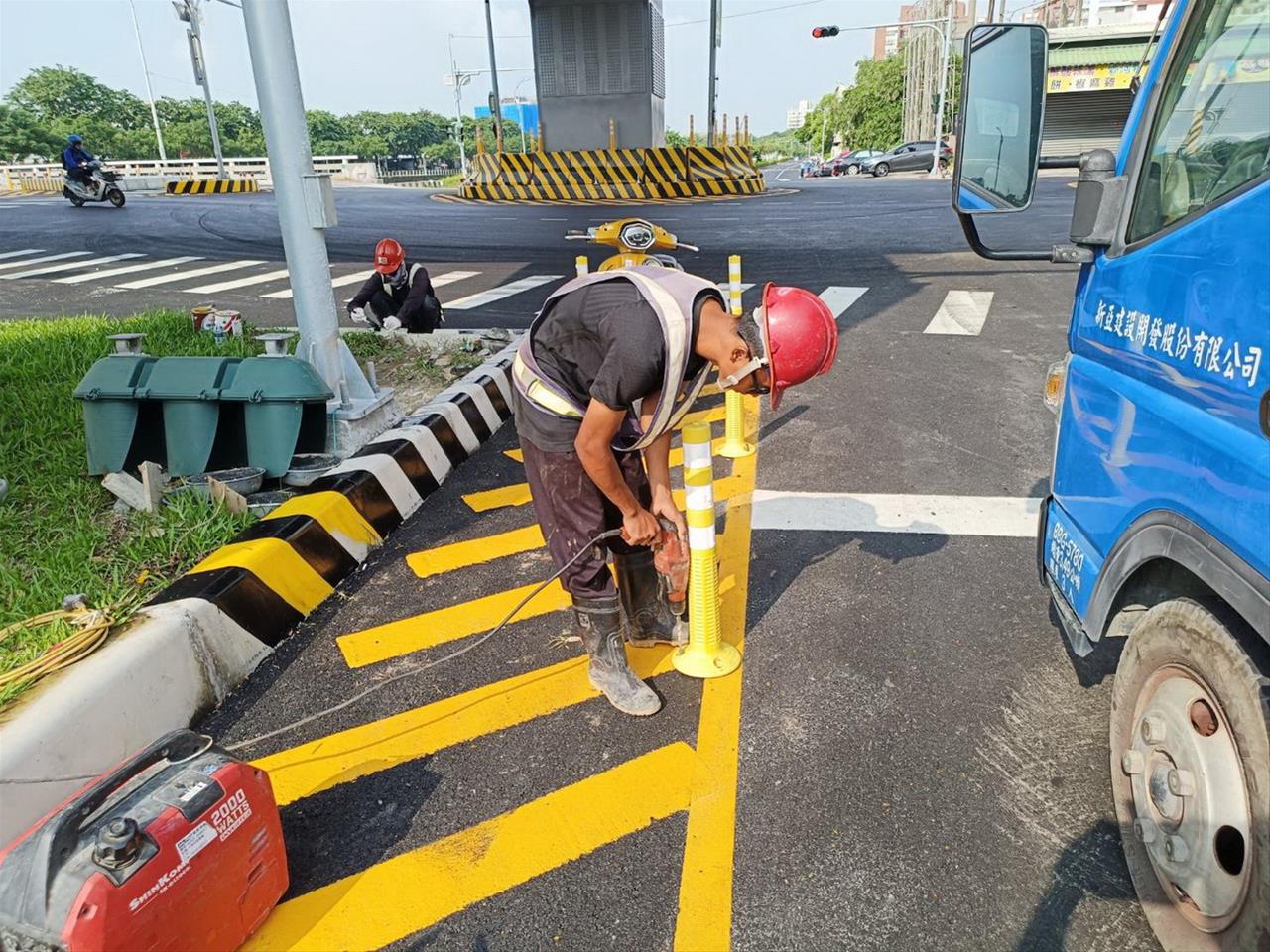 113.09.02 道路復舊河堤路二段道路AC舖築後交維設施安裝