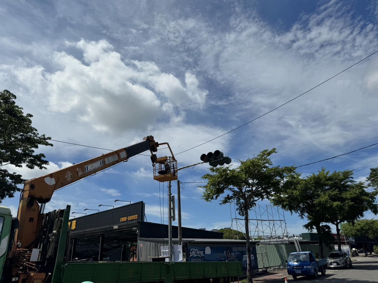 113.09.09 道路復舊全線行人穿越道號誌架空線拉設