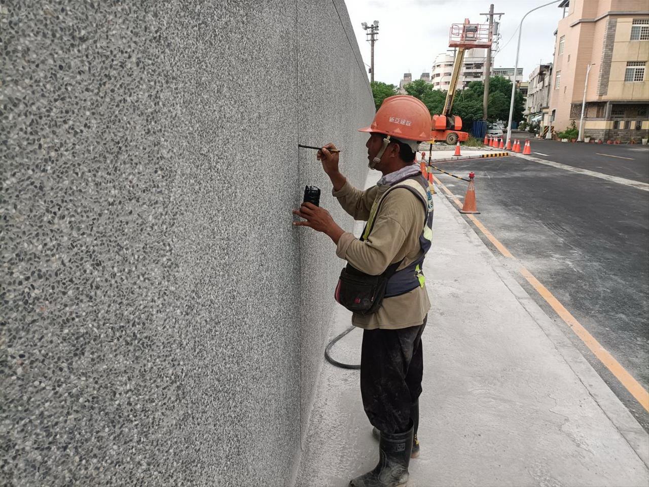 113.09.07 跨站天橋東出口圍牆抿石子施作