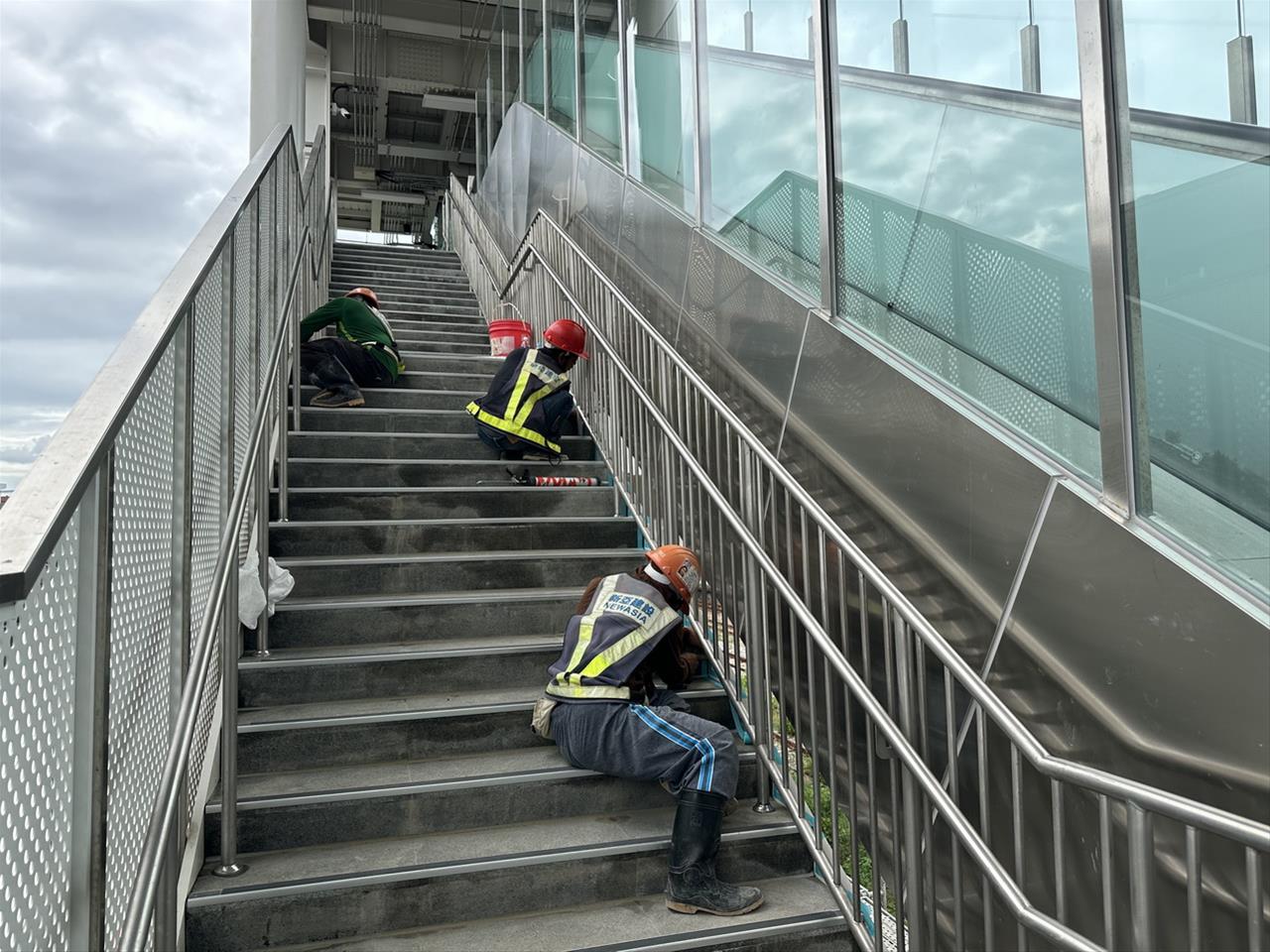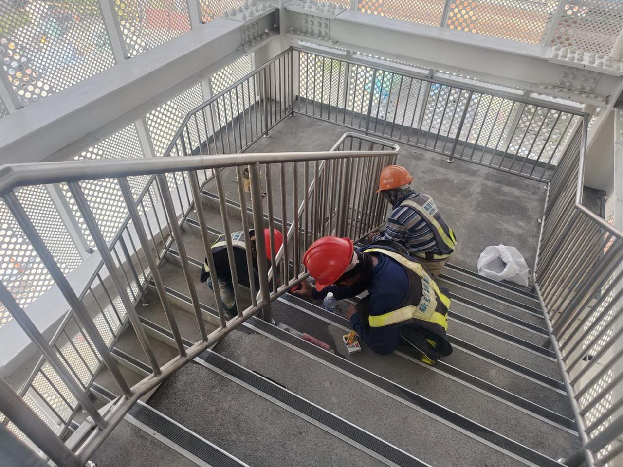 113.09.18 跨站天橋樓梯石材填縫作業