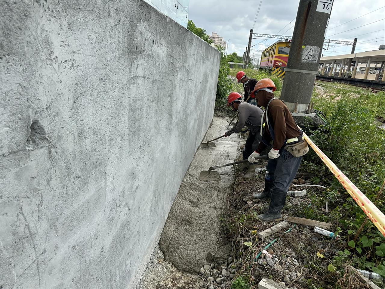 113.09.08 跨站天橋東出口圍牆抿石子施作