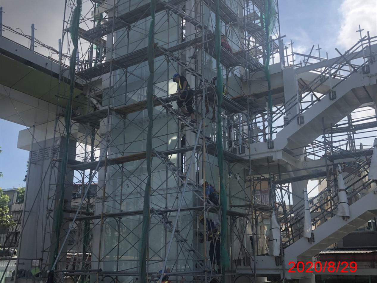 109.08.29 人行天橋東側電梯外牆帷幕玻璃安裝