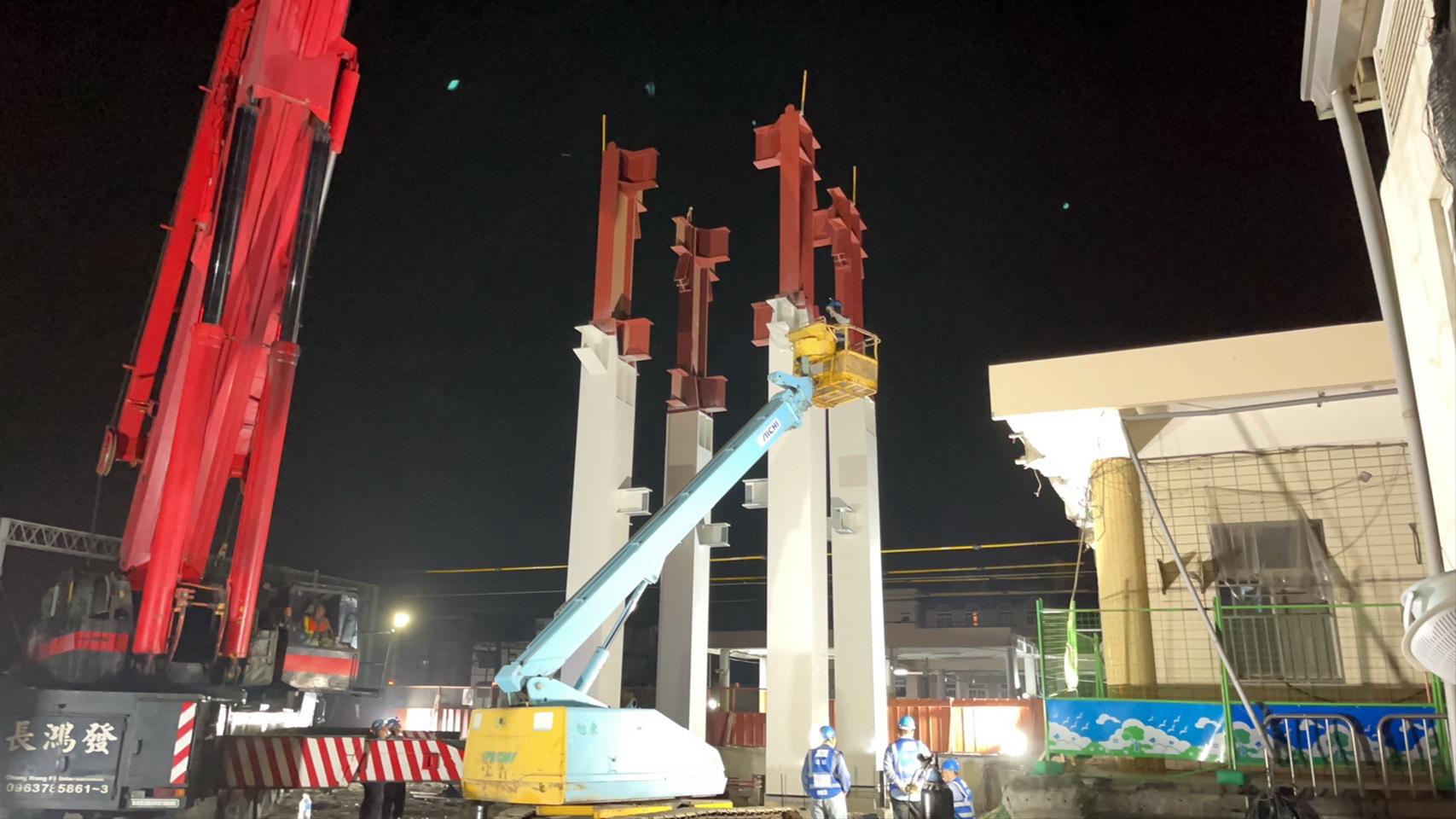 113.03.22 跨站天橋既有車站月台屋頂結構切割拆除完成