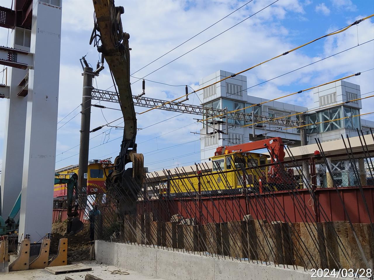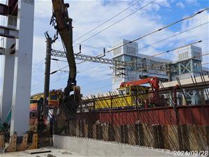 113.03.28 跨站天橋東出入口臨軌側鋼板樁拔樁作業
